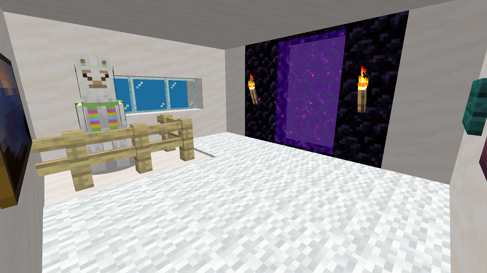 - "llama" (1201319931) "Lama" – Eine Dimension die von Ebene 0 bis 255 komplett mit Grundgestein gefüllt sind. Auf Ebene 65 befinden sich friedliche Räume aus glatten Quarzblöcken mit weißem Teppich, die ein Lama mit einem grünen Teppich haben, ein Wirrschild, auf dem in roter Schrift "RELAX!" (dt. "ENTSPANNE!") steht und ein Karmesinschild, auf dem in grüner Schrift "ENJOY!" (dt. "GENIEẞE!") steht, ein Gemälde und eine Fenster, welches die Umwelt zeigen soll, jedoch nur auf hellblauen Beton zeigt. Jeder Raum besitzt auch ein aktiviertes Netherportal. In einer versteckten Truhe befindet sich ein von "Developer" signiertes Buch, mit dem Namen "A Book" und dem Inhalt "Nothing to solve" (auf deutsch: Der Name: "Ein Buch"; Der Autor: "Entwickler"; Der Inhalt: "Nichts zu lösen"). Die Welt in die einen dieses Buch führt ist zufällig und besteht nur aus Wasser, Lava, Bruchsteinmauern unnd Fichtenstämmen.