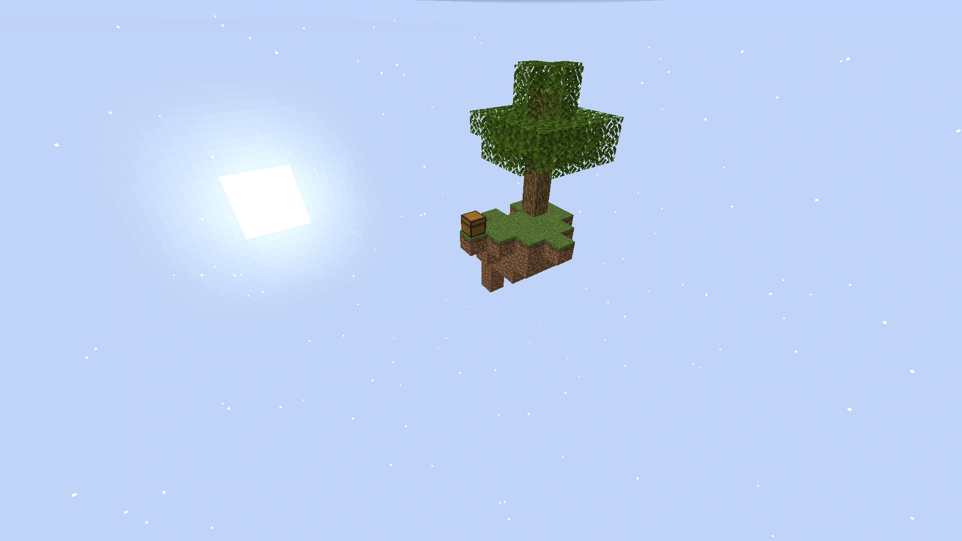 - Der Spieler spawnt auf einen Baum, welcher auf einer herzförmigen SkyBlock-Insel steht.
