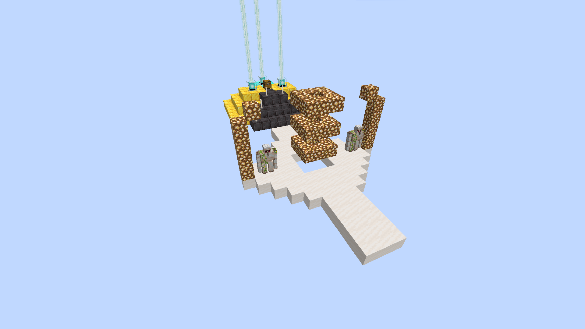 - "missing" (1384344230) "fehlend" – Ein Schrein aus Gold-, Diamant-, Quarz- und Netheritblöcken mit 3 Leuchtfeuern. Es befinden sich zwei Golems vor dem Schrein, welche jedoch keine MobAI besitzen, aber getötet werden können.