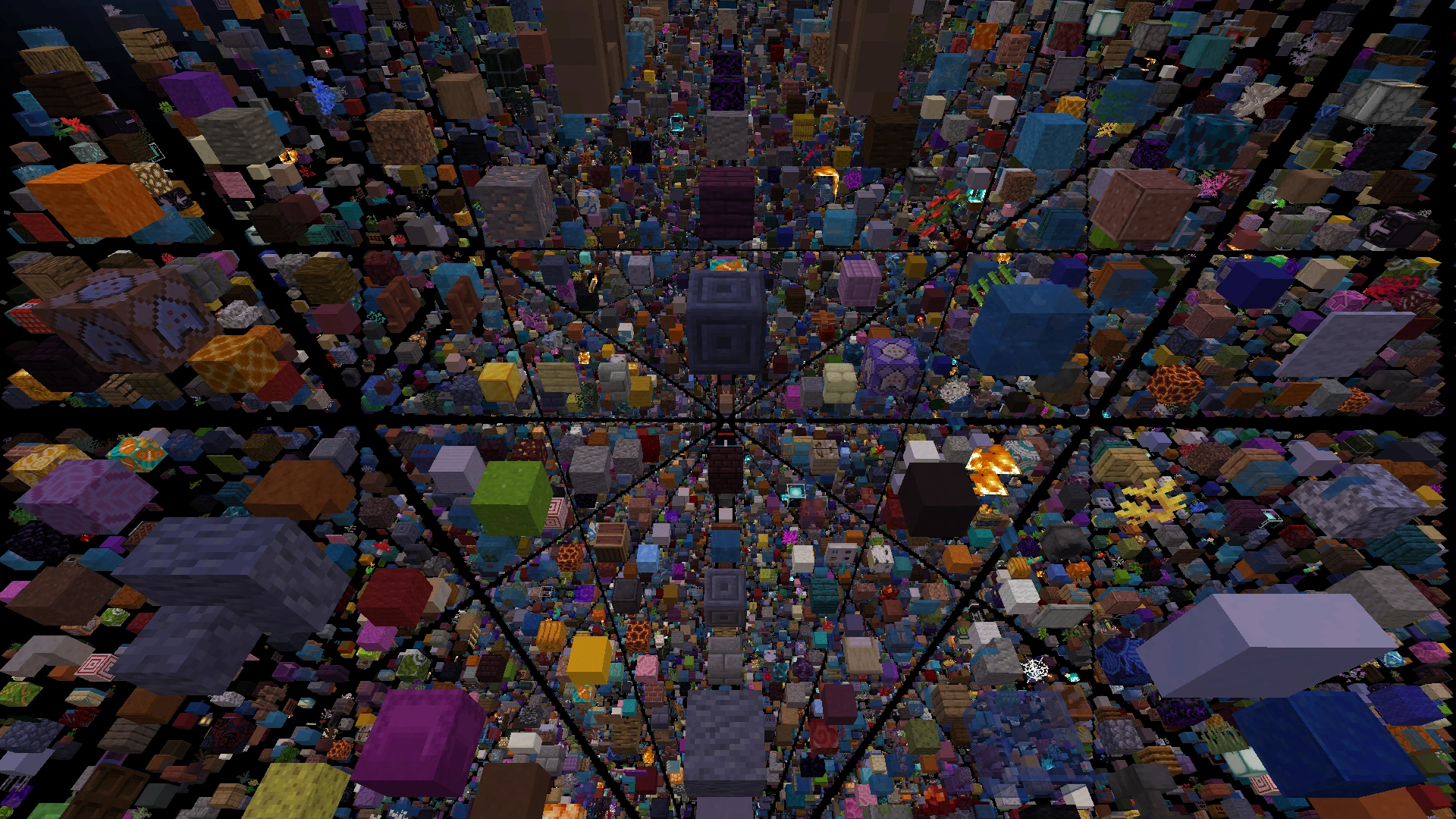 - Viele Blöcke generieren mit Blockdaten, die normalerweise nicht alleine bestehen können, wie fliegende Pflanzen oder fliegende Wasserblöcke.