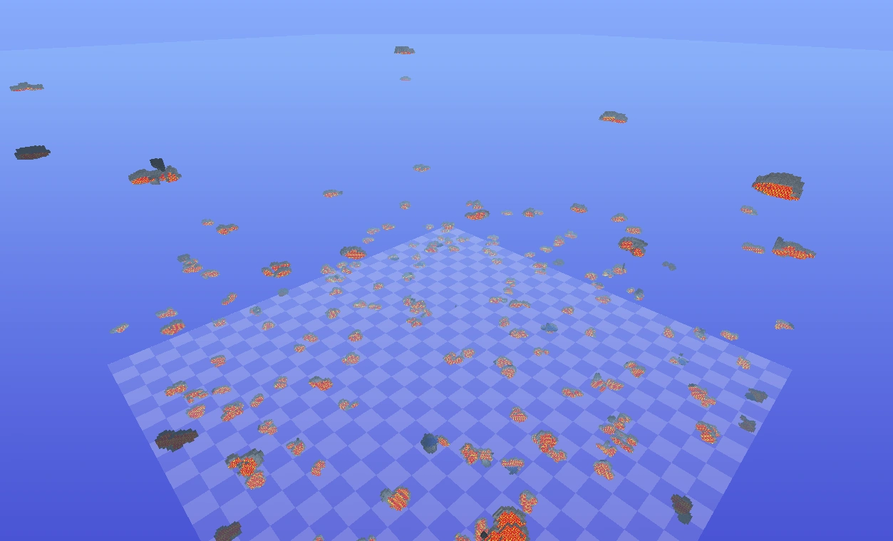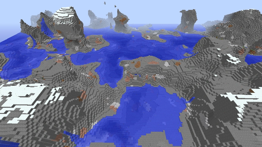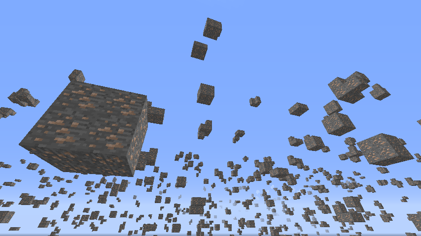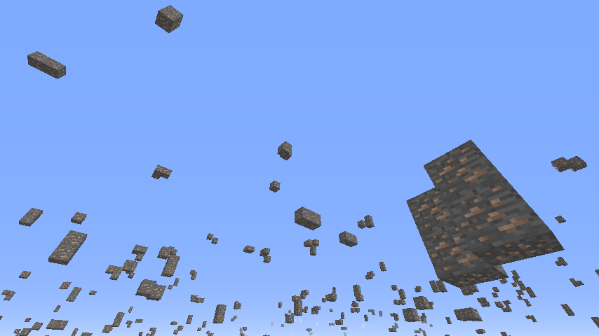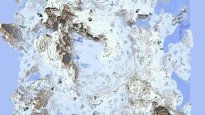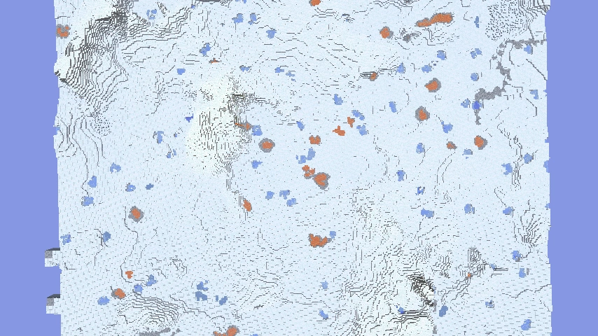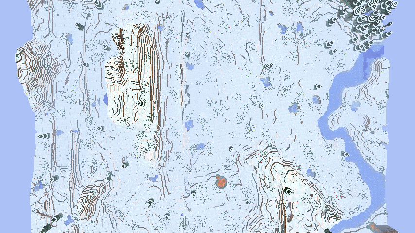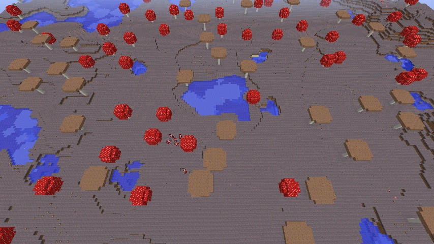 - Auch die Wasser- und Lavaseen werden unabhängig von der Biomgröße verteilt. Allerdings erscheinen sie durch die Veränderung der Biomgröße manchmal an einer anderen Position, wie man z.B. an der Biomgröße 5 sieht.