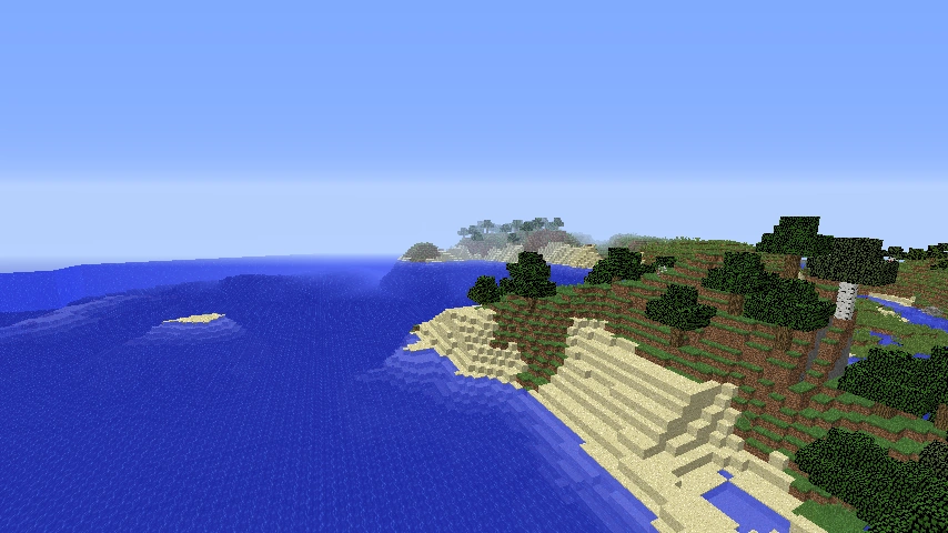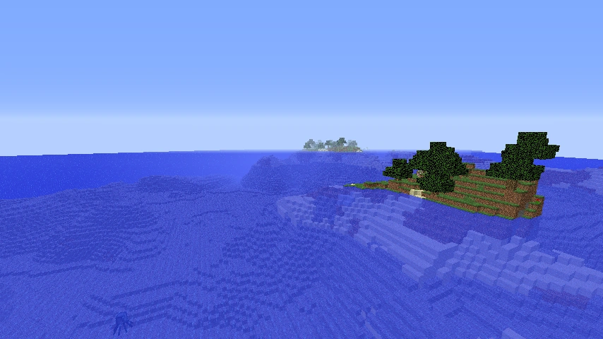 - Bei einer Absenkung des Meeresspiegels wird der ehemalige Meeresgrund der Umgebung angepasst, d. h. obwohl das Biom weiterhin "Ozean" ist, sieht es wie eine Ebene mit Gras und Bäumen aus. Auch können jetzt Seen und Lavaseen an Positionen generiert werden, die ansonsten unter Wasser gelegen hätten, was ihre Generierung verhindert.