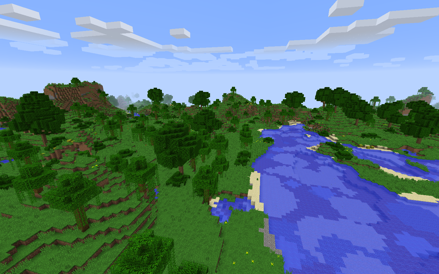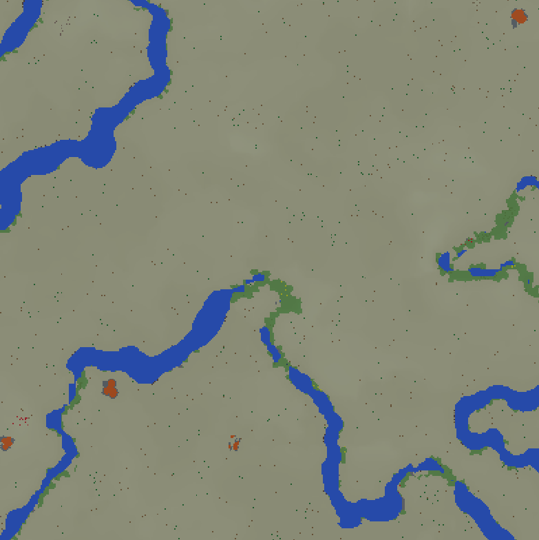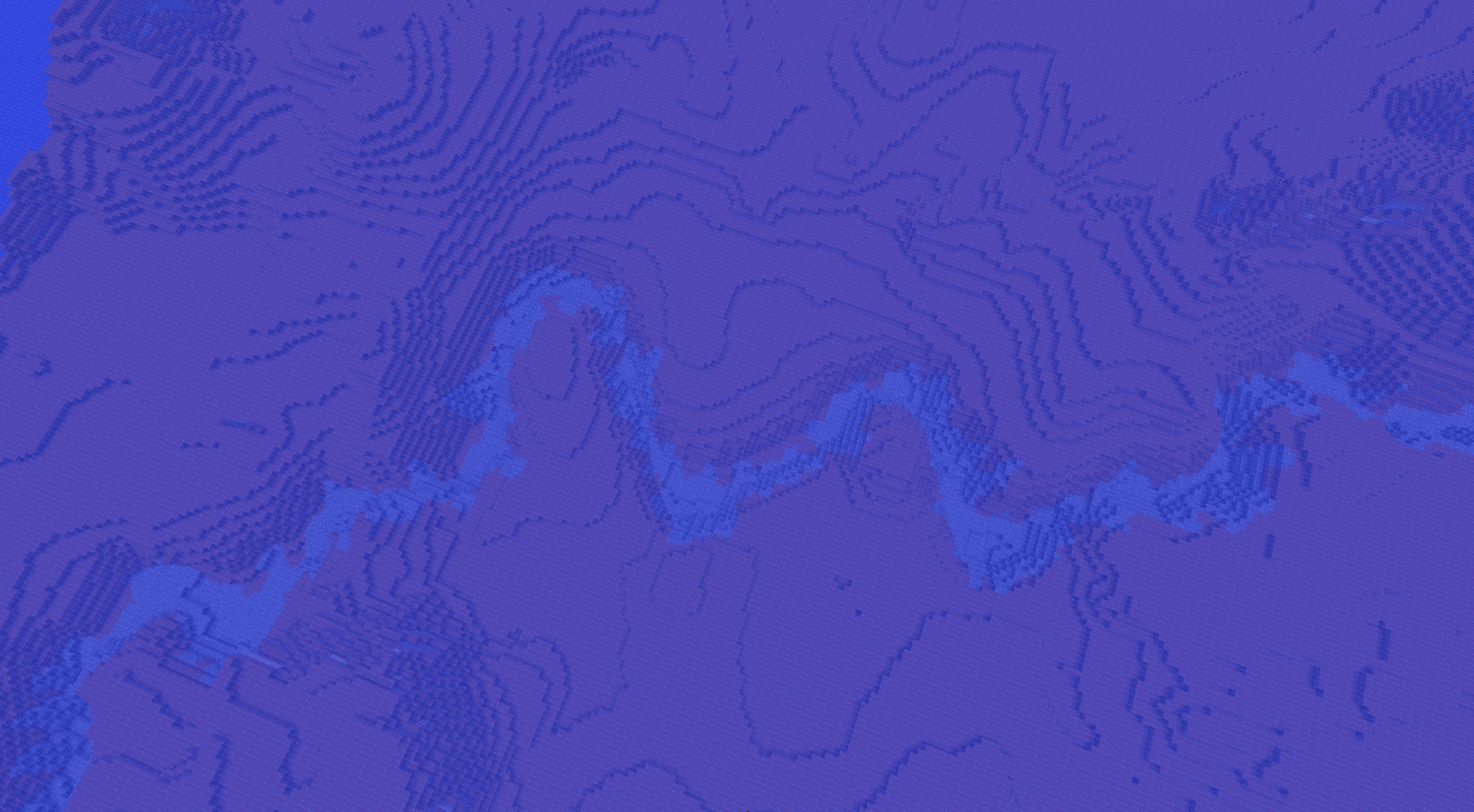 - Die Ausdehung der Flüsse hat wie die Biome ihren Ursprung im Zentrum der Welt bei 0/0. Das bedeutet, das der zentrale Fluss bei allen Flussgrößen bestehen bleibt, während sich die anderen Flüsse mit zunehmender Vergrößerung immer weiter vom Zentrum entfernen.
