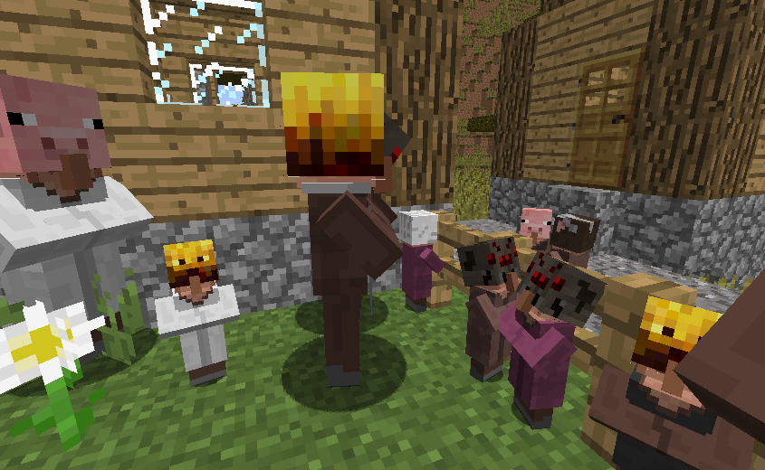 Ein Dorfbewohner, der keinerlei Geräusche von sich gibt, erscheint direkt an der Befehlsquelle. Das funktioniert natürlich für jede Kreatur, z.B. geräuschlos anschleichende Zombies oder schweigende Hühner. Siehe Kreaturdaten. |