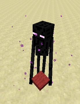An der eigenen Position erscheint ein Enderman, der einen Block rote Wolle trägt (carriedBlockState). Wenn man ihn tötet, erhält man den Block. Siehe Kreaturdaten. /execute as @e[type=enderman] run data merge entity @s {carriedBlockState:{Name:"minecraft:barrier"}}