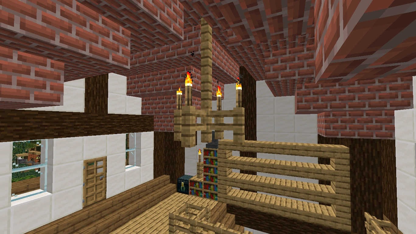 Ein Wohnzimmer dient meist zum Ausruhen und hat im Überlebensmodus wenig Sinn. Die Einrichtung besteht meist aus einem Sofa oder einigen Sesseln, einem Tisch, einem Fernseher, in älteren Häusern auch gerne ein Kamin, und einigen Regalen mit Dekorationen. Teppich wird hier oft verwendet. Die Farbe wird auf die Einrichtung und auf den Stil des Hauses abgestimmt.