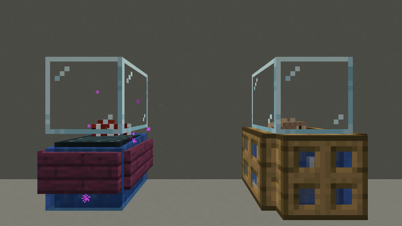 Ein Aquarium ist oft ein Wasserbehälter in einem Raum, meist dem Wohnzimmer. Der Boden besteht oft aus Sand oder Kies, um eine natürliche Umgebung zu erzeugen. Die Umrandung wird oft aus Quarz gebaut, jedoch eignen sich fast alle Materialien. Wichtig ist es ebenfalls, auf Licht zu achten, da man sonst nichts erkennt. Seelaternen eignen sich unter Wasser am besten. Je nach Lichtlevel ist es möglich, die Scheiben des Aquariums aus Glas oder auch aus Eis zu bauen. Sollte man sich für Glas entscheiden, eignen sich die gefärbten Gläser in Blautönen und in weiß sehr gut. Wenn Boden, Licht, Umrandung und Scheiben gebaut wurden, wird der Behälter mit Wasser befüllt. Blätter können ebenfalls hineingesetzt werden. Die Abdeckung kann nun aus demselben Material wie die Umrandung des Bodens gebaut werden. Tintenfische können in das Aquarium gesperrt werden. Im Überlebensmodus ist es jedoch wichtig, diese zu benennen, um das Despawnen zu verhindern. Im Kreativmodus besteht die Möglichkeit, mittels Befehl nie despawnende Gegenstände, in diesem Fall Fisch, Lachs, Tropenfisch und Kugelfisch, auf einem unsichtbaren Tintenfisch reiten zu lassen. Auch dadurch lassen sich gut Fische darstellen. Man sollte diese Techniken nur bei einem größeren Aquarium anwenden. Die Größe ist jedoch sehr variabel. Bei einem sehr großen wird die Befüllung aber sehr schwer.