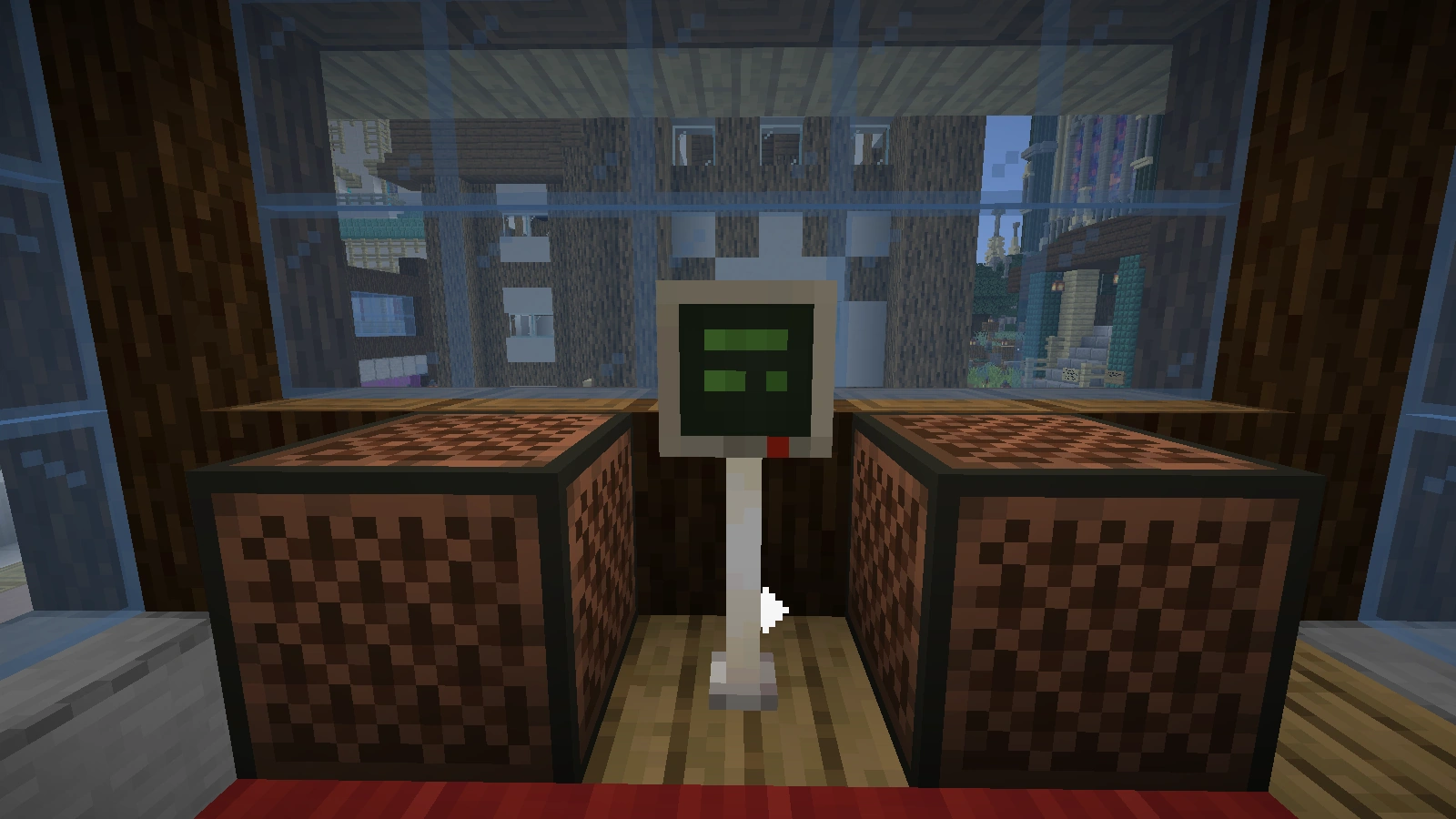 Dieser Fernseher ist ein Standard-Modell. Er besteht aus einer größeren Fläche aus Obsidian, Kohleblöcken oder schwarzer Wolle. Meist wird das Format 4x2 oder 3x2 verwendet. Unter den Fernseher wird oft eine Ablage gebaut. Links und rechts davon lassen sich mittels Notenblöcken Lautsprecher simulieren.