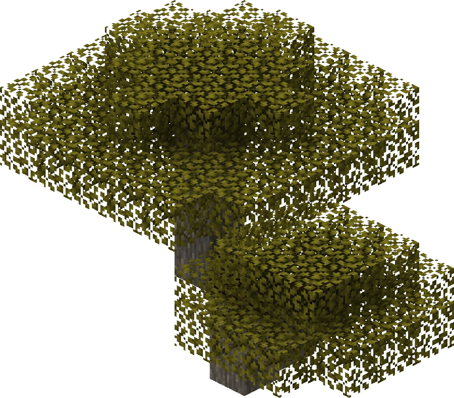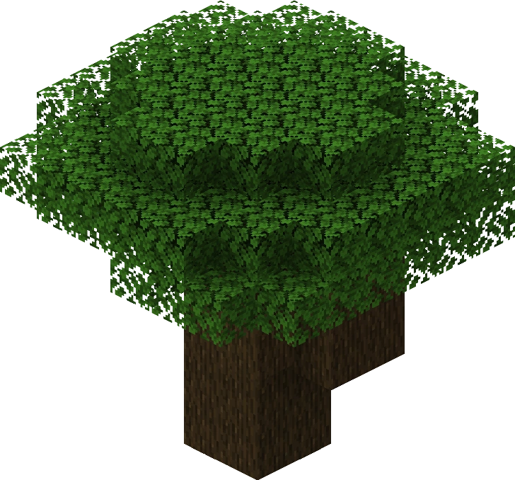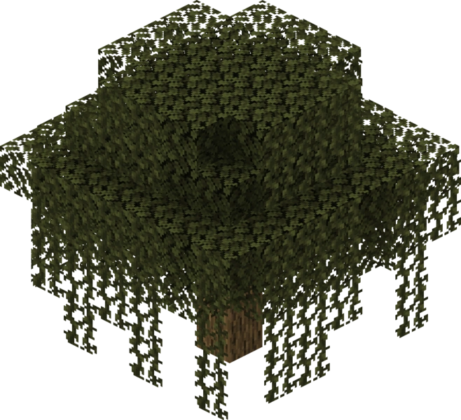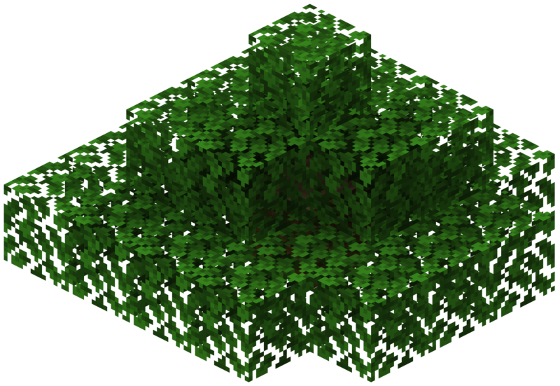 Normal | Schwarzeichen bestehen aus einem 2×2 Blöcke dicken Schwarzeichenstamm mit einer Krone aus Schwarzeichenlaub. Der Stamm verbreitert sich zur Krone hin. Sie können bis zu zwölf Blöcke hoch werden. Die Krone ist flach und weit ausladend, sodass sie mit Nachbarbäumen ein durchgehendes Laubdach bilden kann. Manchmal lässt das Laub wie bei normalen Eichen Äpfel fallen. |