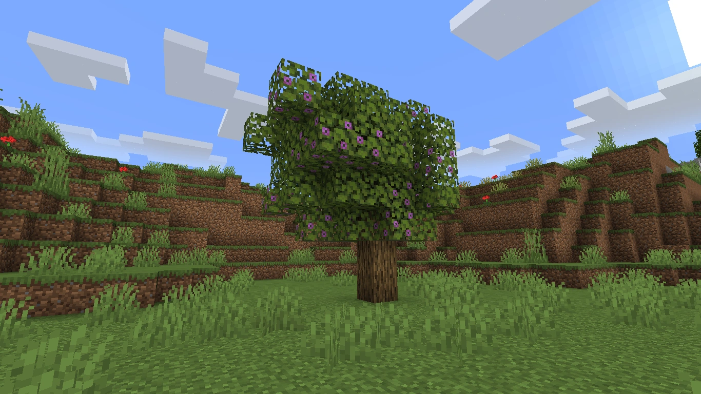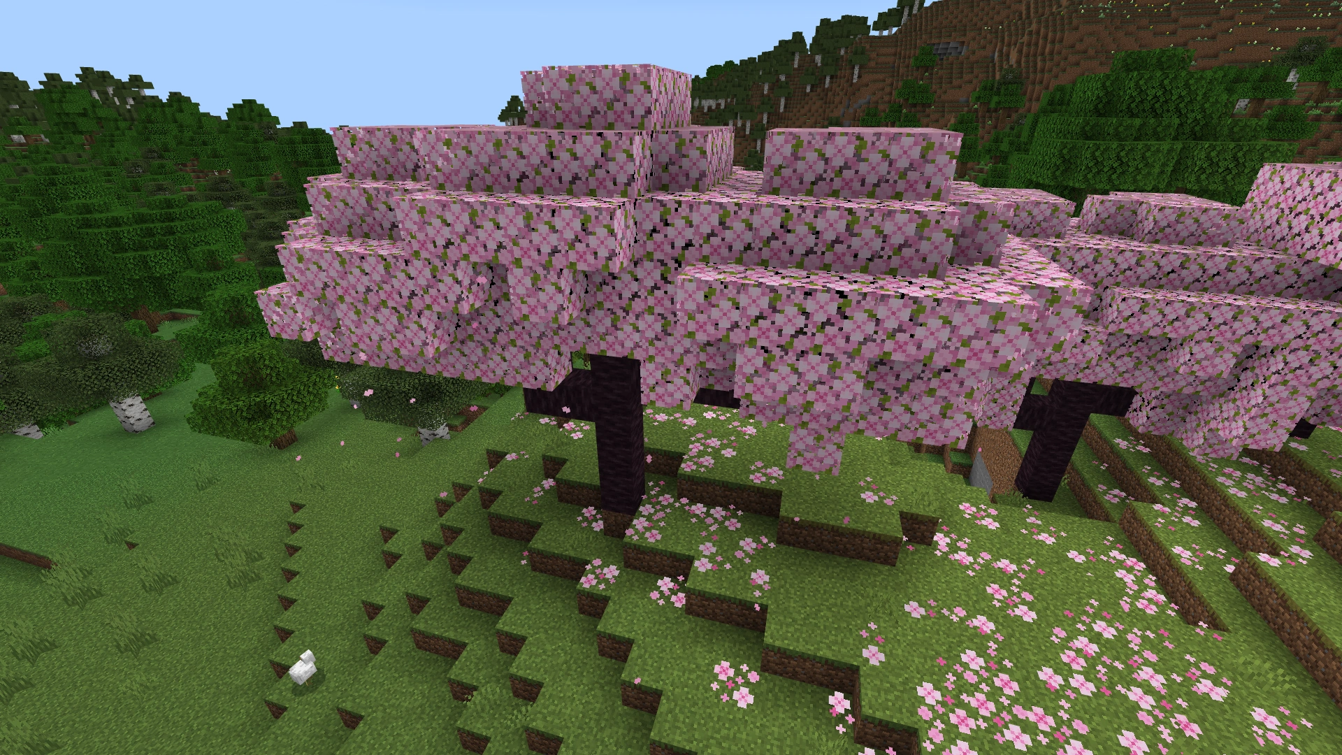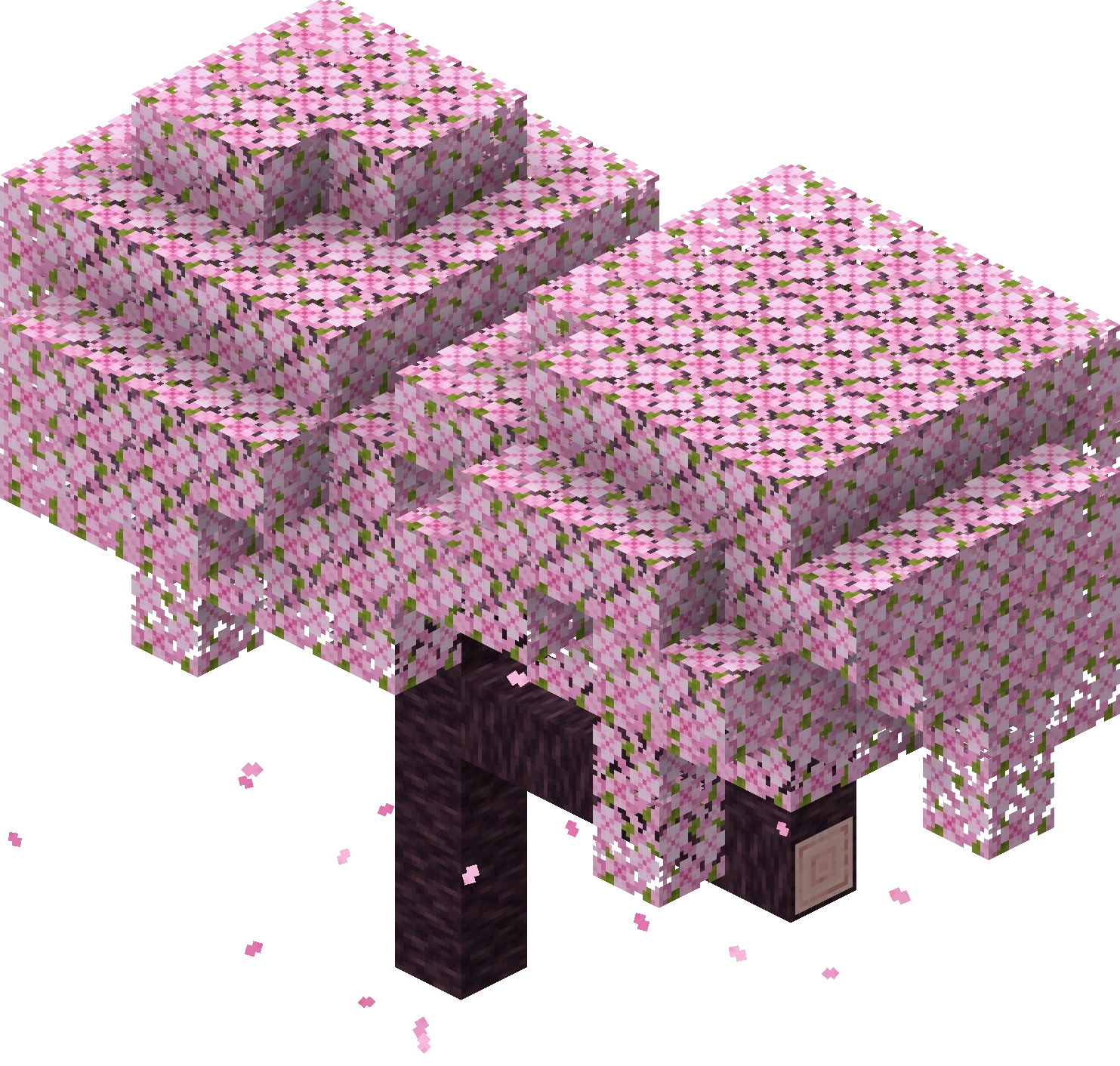 Kirschbäume bestehen aus Kirschholz und Kirschlaub. Aus Setzling können verschiedene Varianten des Kirschbaumes erzeugt werden. Sie besitzen einen einzigartigen Partikeleffekt, bei dem Blütenblätter herunterfallen. |