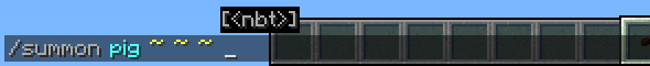 Beim Eingeben des Befehls wird die Syntax vom Parser nach und nach vervollständigt. Die vollständige Syntax für den Summon-Befehl lautet: /summon <entity> [<pos>] [<nbt>]. Dabei bezeichnen die spitzen Klammern einen Parameter, die eckigen Klammern bedeuten, dass der Parameter optional ist, also weggelassen werden kann. Der Summon-Befehl hat also drei Parameter, die letzten beiden sind optional.