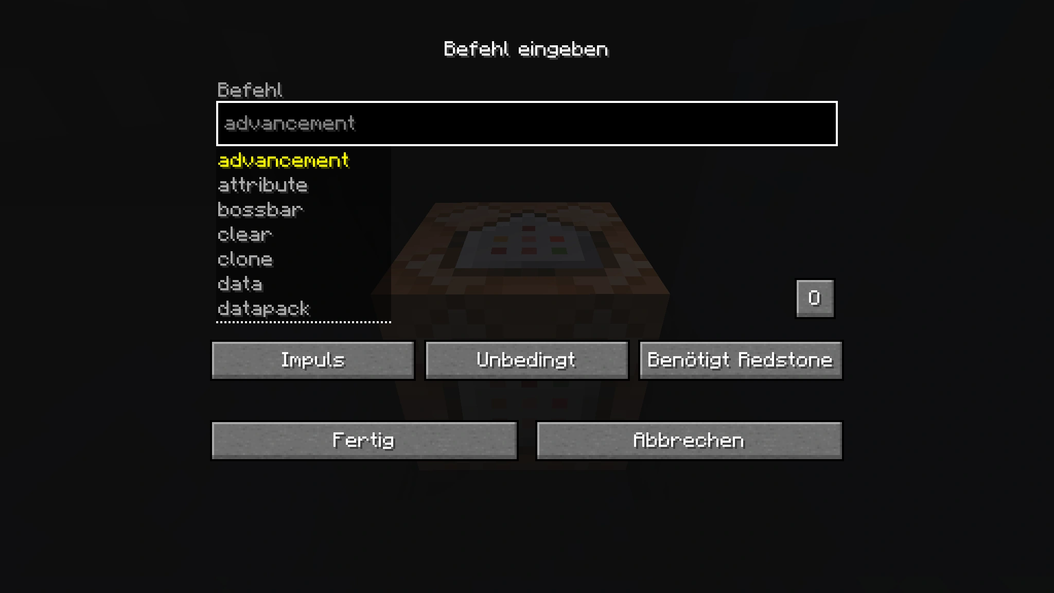 - Command: Der Befehl im Befehlsblock.