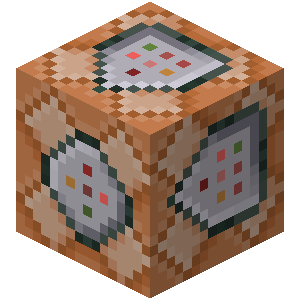 - CustomName: Befehlsblöcke geben bei Meldungen im Chat diesen Namen an, der standardmäßig "@" lautet, aber mit einem Amboss auch geändert werden kann. Optional können Namen als JSON-Text vergeben werden (Beispiel: