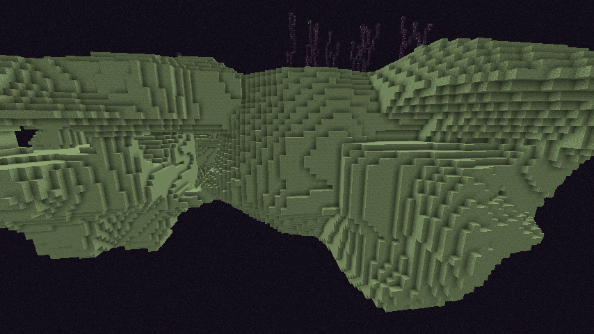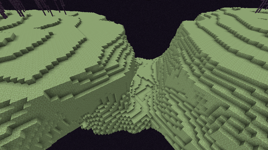 Dieses Biom wird genutzt, um die Ränder der großen schwebenden Inseln im äußeren Rand des Endes zu generieren. Daher enthält es meistens viel Leere und die Ränder der großen Inseln. Diese sind meist nahezu senkrecht und teilweise mit Überhängen versehen, so dass man sich nur mit Vorsicht näher an sie heranwagen sollte. Denn nur ein paar unbedachte Schritte zu viel und man landet in der endlosen Leere, die für einen schnellen Tod sorgt. Auf der Oberfläche der Inseln spawnen Endermen. Zufällig im gesamten Ende generierte Endtransitportale können hier ebenfalls vorkommen. |