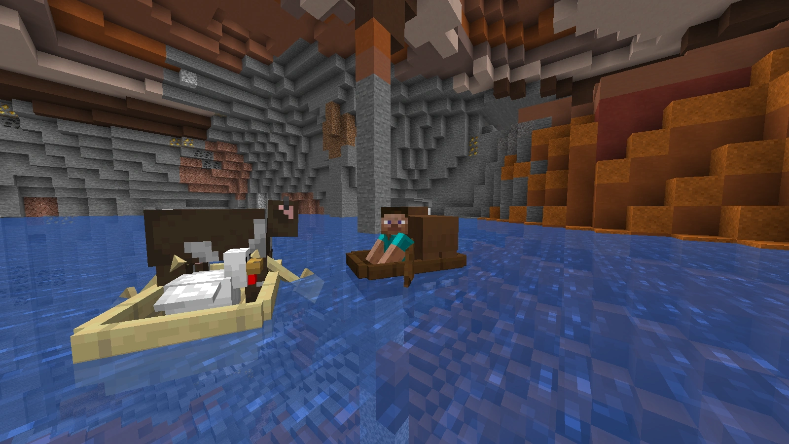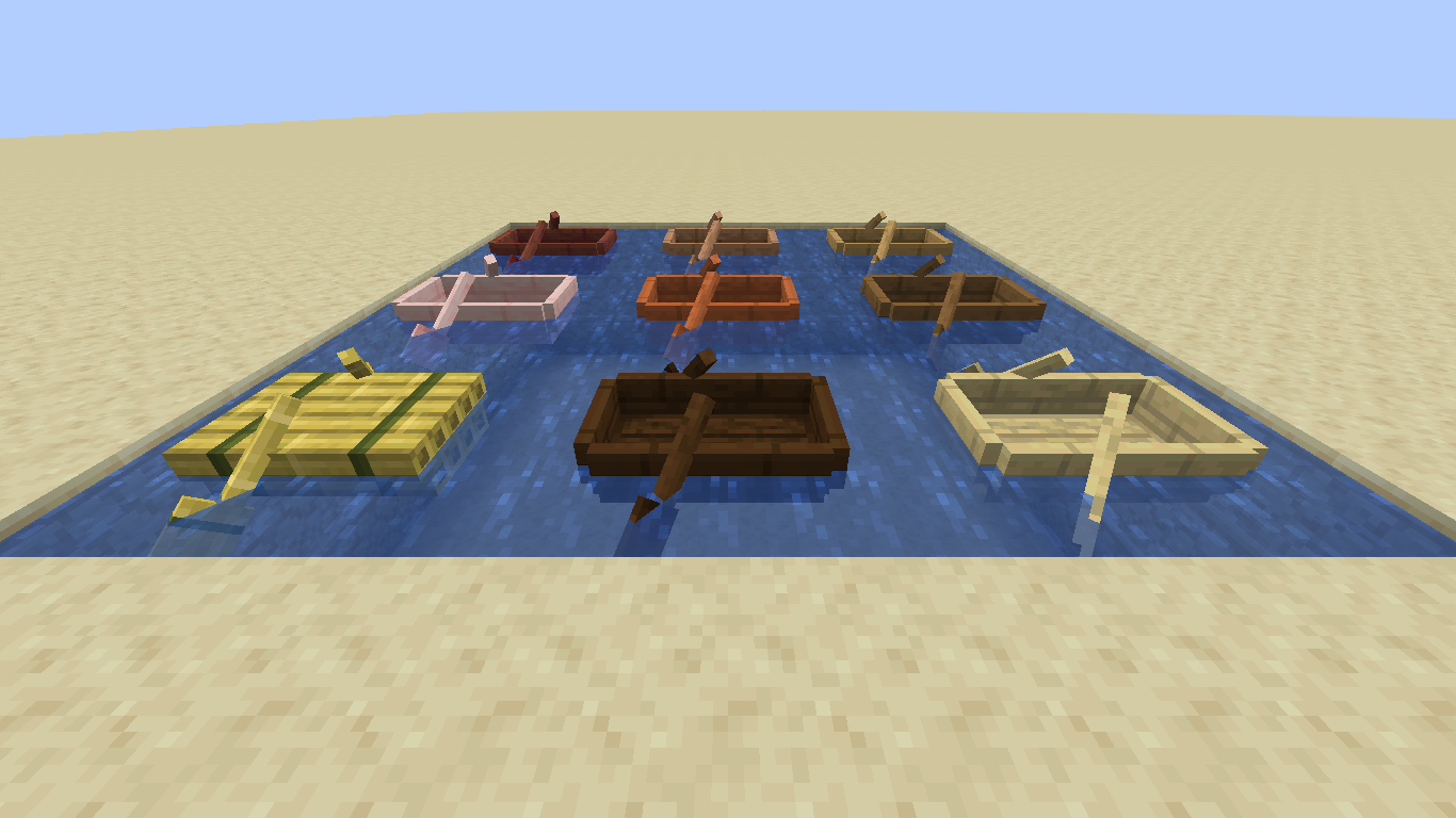 - Kreaturen in Booten despawnen nicht. Dies verhindert aber nicht, dass z. B. Zombies oder Skelette durch Tageslicht Schaden nehmen und sterben oder Dorfbewohner von Zombies angegriffen werden können.