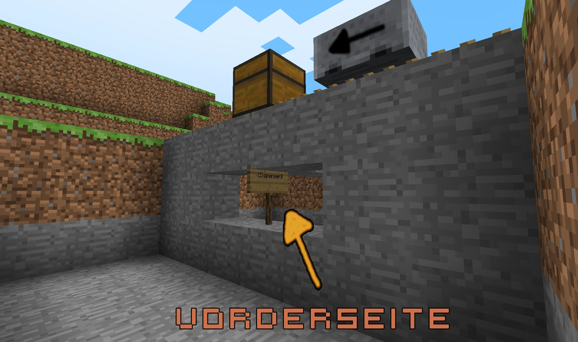 Durch senden eines Redstone Signals an den Spenders wird eine Lore aus der Truhe ausgeworfen. Damit dies funktioniert muss ein Schild