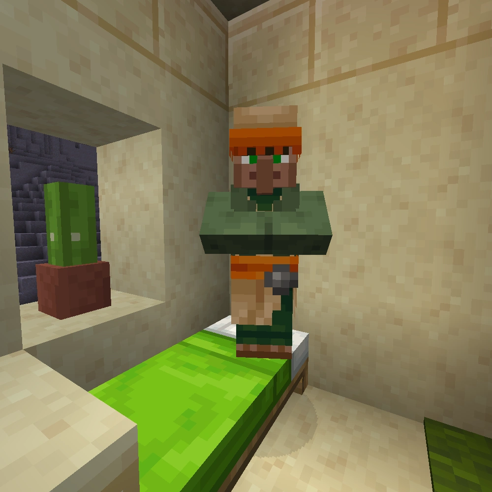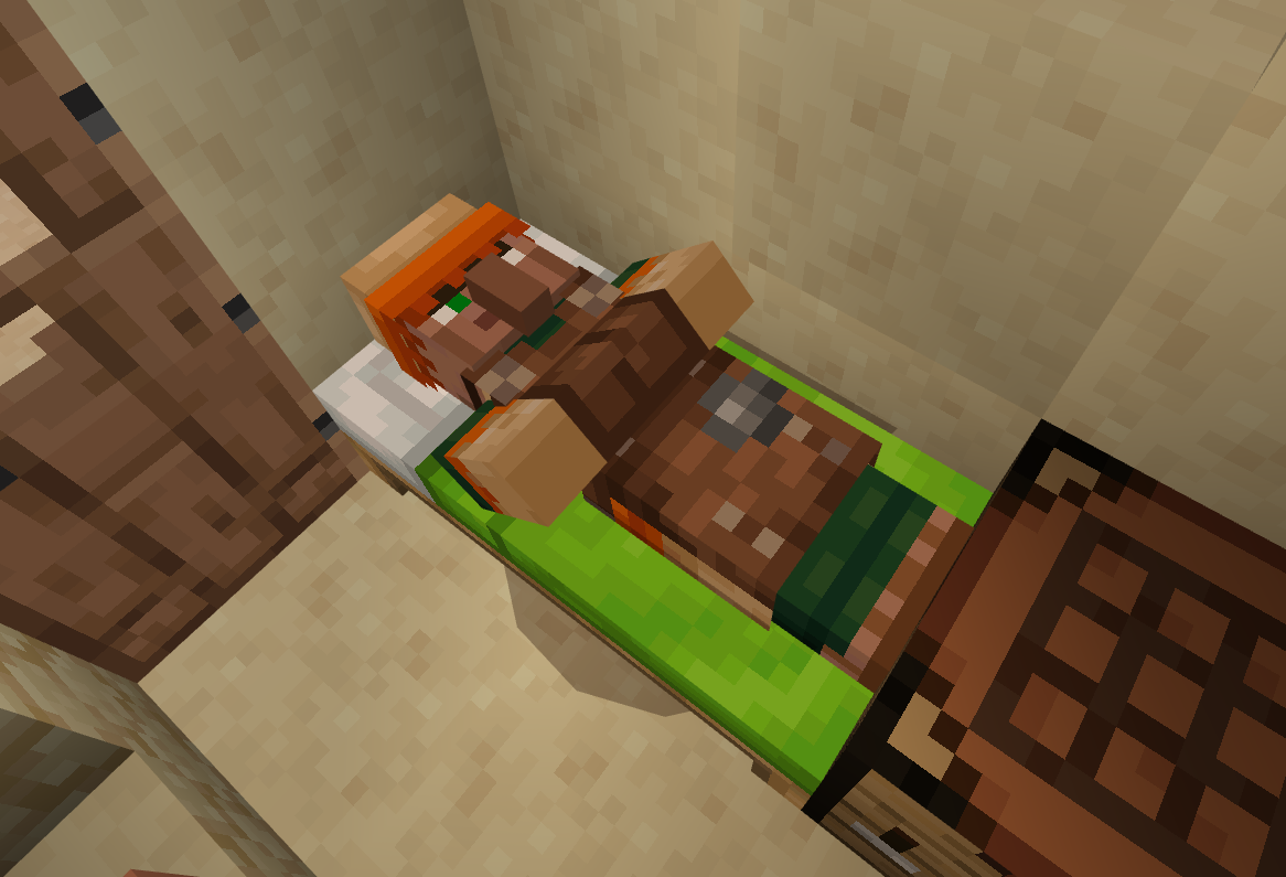 - Entfernt man einen Arbeitsblock neben einem schlafenden Dorfbewohner, verliert er den Beruf und steht auf.