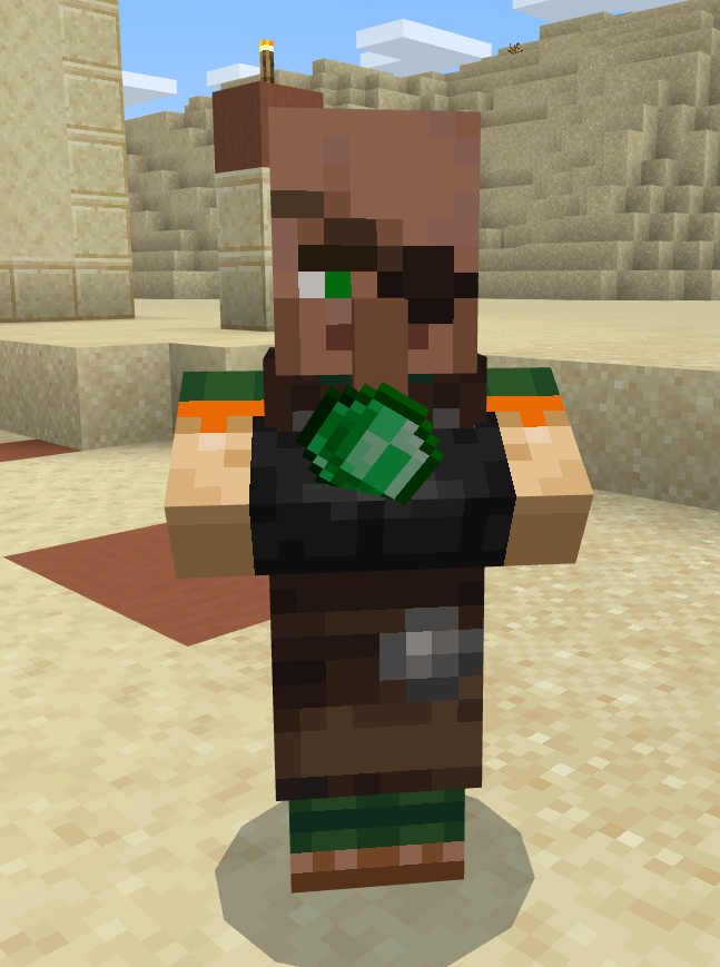 - In der Bedrock Edition wird beim Öffnen der Handels-GUI ein Smaragd über einem Dorfbewohner angezeigt.