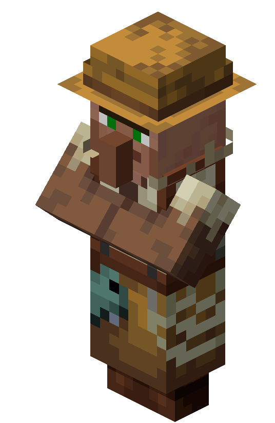 Den grünen Dorfbewohner gab es seit Einführung der Dorfbewohner mit Vollversion 1.0 (Beta 1.9-pre1), aber er wurde nicht natürlich gespawnt. Man konnte ihn mit Modifikationen und seit Vollversion 1.7 auch mit dem Befehl /summon Villager ~ ~ ~ {Profession:5} ins Spiel holen. Dann hatte er nur ein einziges Handelsangebot, das als Standard definiert war: er kaufte 8 bis 9 Goldbarren für einen Smaragd.