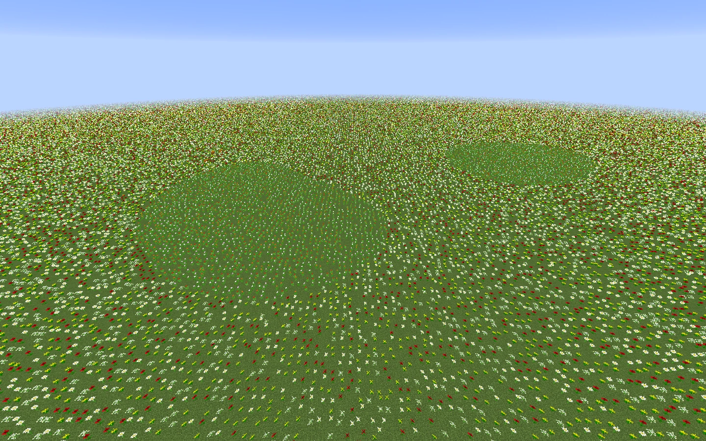 Dem Auftreten dieser Tulpenblasen liegt genau die Perlin-Noise Funktion zugrunde, die auch für das Blumenmuster im Blumenwald verantwortlich ist. Für einen bestimmten Bereich von Höhenwerten dieser Funktion werden Tulpen generiert. Dass die Blasen nur Tulpen beinhalten und in der Mitte keine anderen Blumen zulassen zeigt, dass sich in jeder Blase jeweils eine Extremstelle der Funktion befindet.