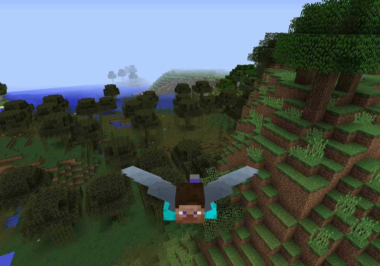 Sobald der Spieler von einer gewissen Höhe springt, kann er mithilfe der Flügel gleiten, nachdem er im Fallen die Springen-Taste (standardmäßig Leertaste) drückt. Den Flug steuert man mit der Maus: Man fliegt dort hin, wohin man schaut (Fadenkreuz). Wenn man zu steil nach oben fliegt (Überziehen), verliert man an Geschwindigkeit und kann abstürzen. Man kann allerdings neuen Schwung aufbauen, indem man zunächst nach unten fliegt oder im Flug Feuerwerksraketen zündet. Außerdem kann der Effekt Sanfter Fall dazu beitragen, größere Entfernungen zu bewältigen, bzw. länger zu gleiten.