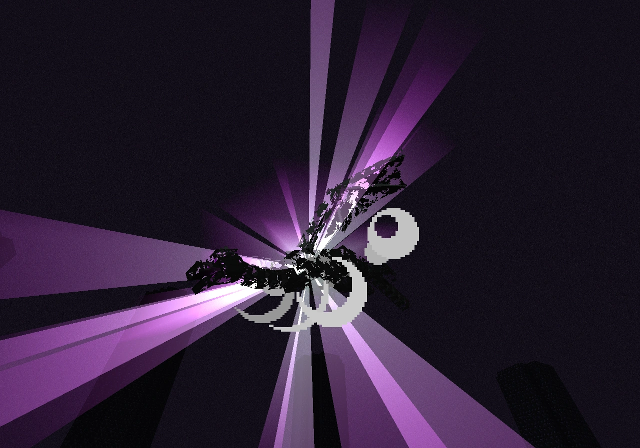 Wenn der Enderdrache auf Kreaturen stößt, schleudert er sie weg. Kreaturen mit wenig Lebenspunkten sterben dabei, die anderen nehmen entsprechenden Schaden. Endermen teleportieren sich weg und können so dem Enderdrachen ausweichen. Eine Besonderheit gibt es bei den Wächtern: Sie nehmen zwar auch Schaden, aber sie schlagen zurück und schädigen ihrerseits den Enderdrachen, ohne dass ein Wächterstrahl zu sehen ist (hier im Kreativmodus getestet. Der Spieler schwebt in der Mitte, um den Enderdrachen durch seine Anwesenheit anzulocken).