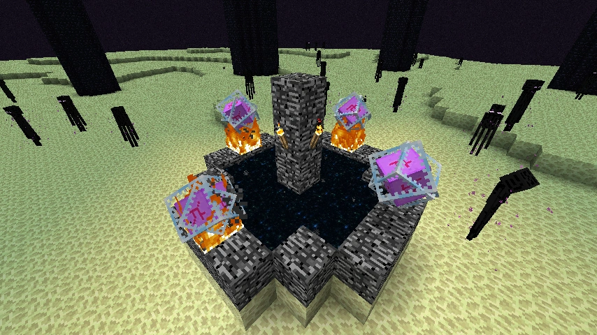 Neu mit Version 1.20.3: Ordnet man Enderkristalle so an, entstehen alle Enderkristalle und der Enderdrache erneut.