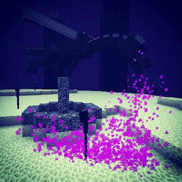 Entfällt mit Version 1.20.3: Erst, wenn der Enderdrache besiegt ist, kann man das Ende wieder (durch das erscheinende springbrunnenartige Portal) lebendig verlassen. Bei seinem Tod leuchtet um ihn der Himmel in lila Strahlen und der Drache verschwindet endgültig. Dann erscheint eine Vielzahl Erfahrungskugeln (im Wert von 12000 Erfahrungspunkten), und unter dem Todespunkt erscheint das Portal, eine kleine Grundgesteinformation, an der Fackeln befestigt sind. Auf ihrer Spitze liegt das Drachenei.