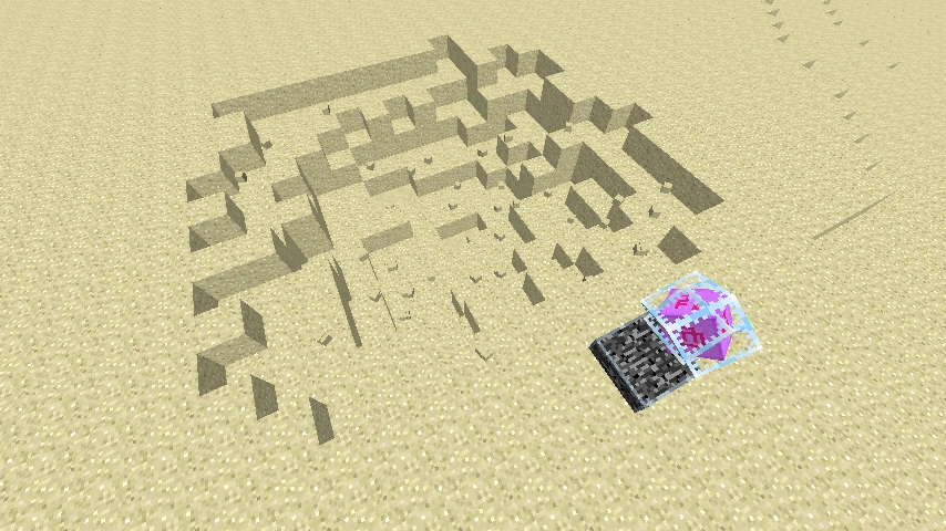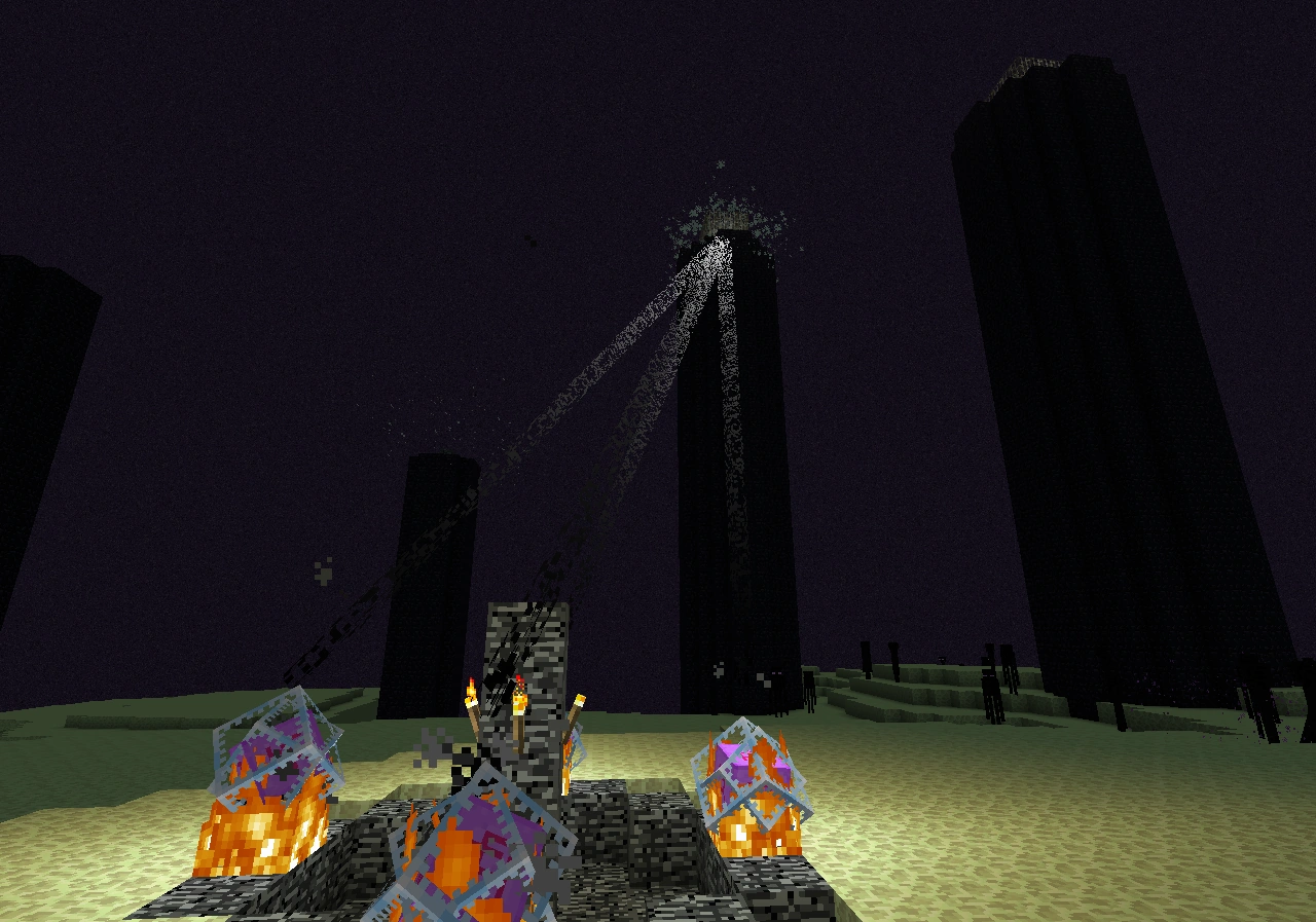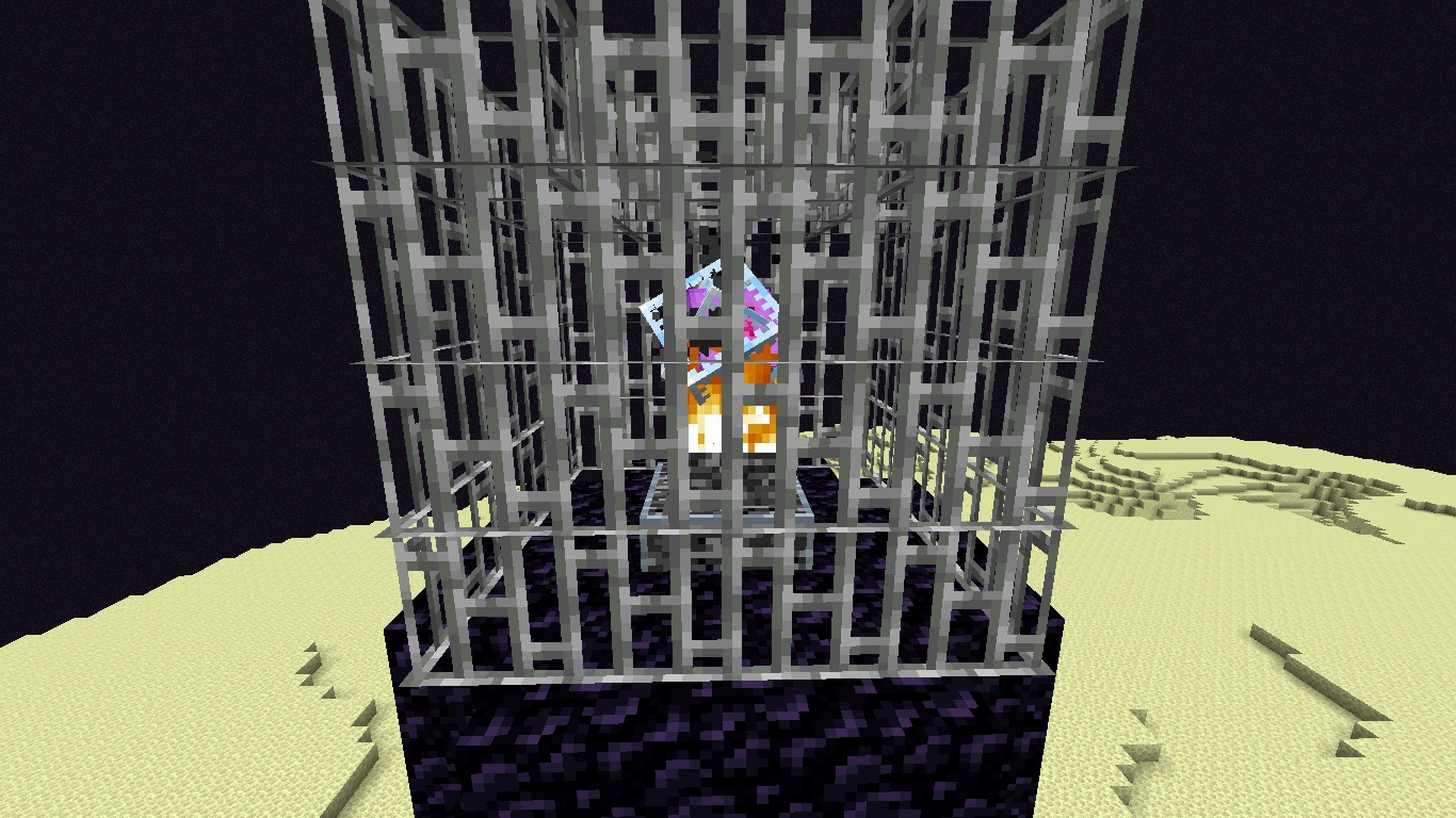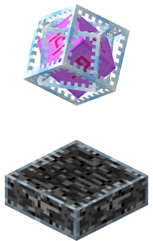 Der Enderkristall ist kein Block, sondern ein Objekt. Er besteht aus einer Grundgesteinstufe und rotierenden Würfeln, ist aber unsolide und somit frei begehbar. Im Ende befindet sich zusätzlich ein echter Grundgestein-Block an der Position des Enderkristalls. Auch das Feuer ist ein Block, der immer wieder auf den Grundgestein-Block gesetzt wird (da dieser normalerweise nicht brennt).