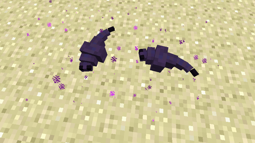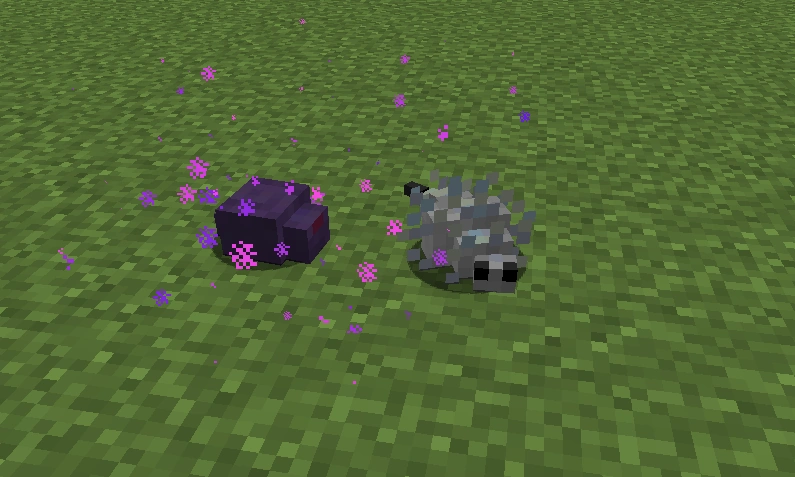 - Endermiten sind von den typischen Partikeln umgeben, die auch z. B. Endermen und Endertruhen umgeben.