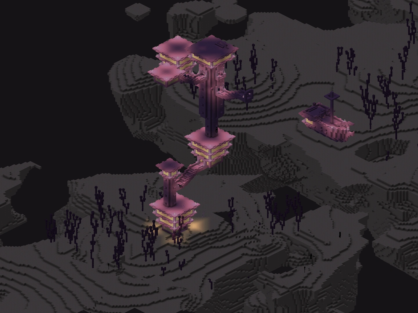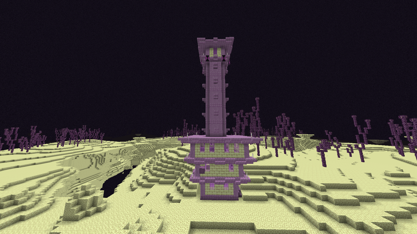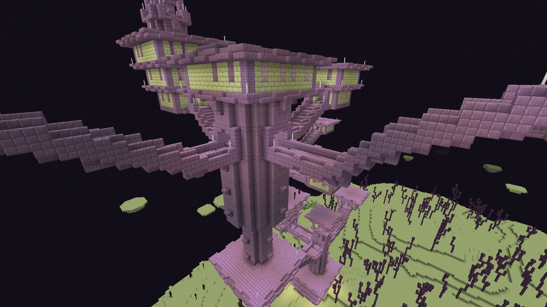 Das Bauwerk besteht vor allem aus Endsteinziegeln, Purpurblöcken und dessen Varianten und wird von Endstäben beleuchtet. In seinen Mauern findet man Shulker.