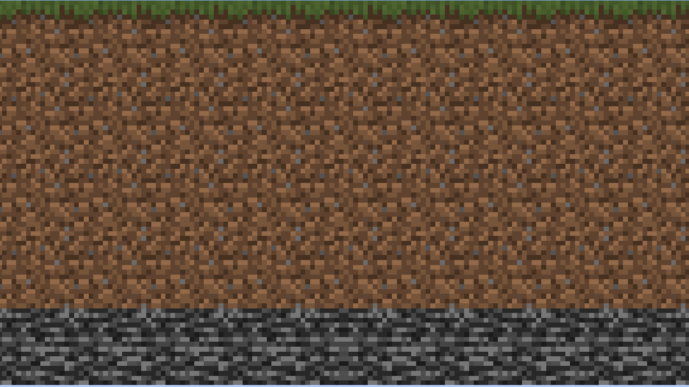 Vier Blockschichten in einer klassischen Flachlandwelt: Grundgestein, zwei Schichten Erde und Grasblock