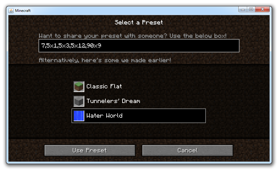 Der Aufbau einer Flachland-Welt kann detailliert angepasst werden. Der genaue Schichtenaufbau, das Biom, zusätzliche Bauwerke sowie dekorative Elemente können angegeben werden.