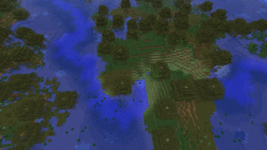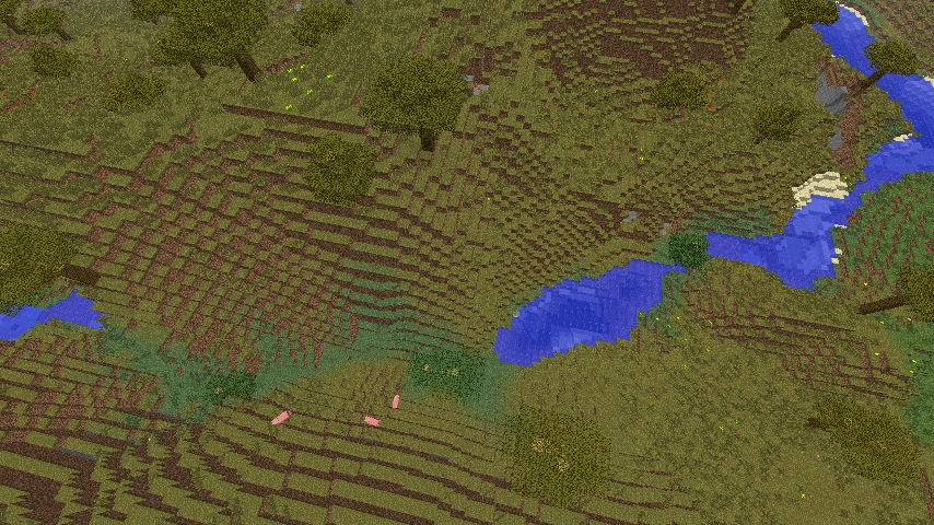 - Flüsse durchqueren auch Sumpfgebiete. Man muss genau hinschauen, um das Flusswasser vom Sumpfwasser zu unterscheiden. Aber auch an der helleren Grasfarbe kann man das Flussbiom im Sumpf erkennen.