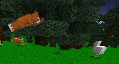 - Füchse sind die einzigen Oberwelt-Landkreaturen ohne Sprungkraft, die ohne Statuseffekt mehr als 1 Block hoch springen können.