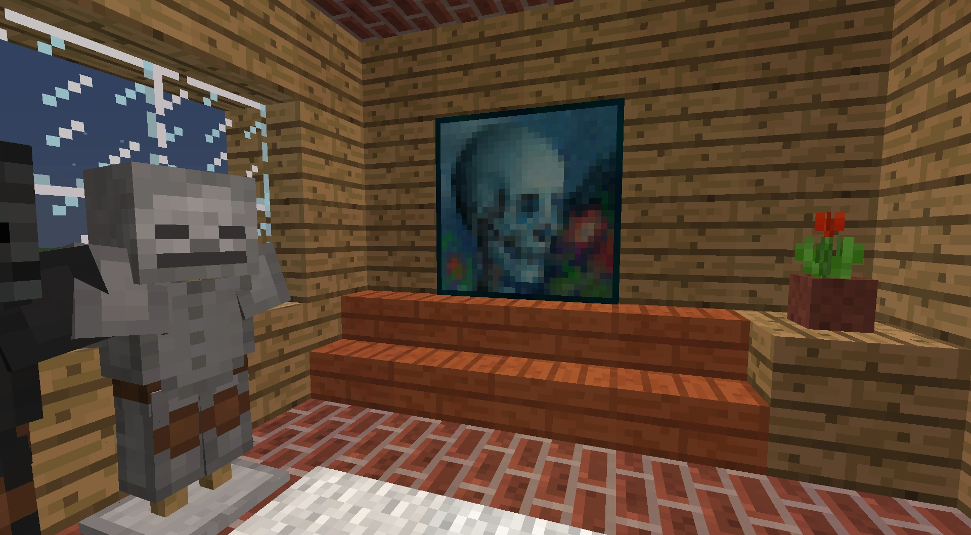 Mortal Coil (2003) | Ein Skelett in einem Ballettschuh auf einer Fensterbank. Anspielung auf die Figur "Bruno Martinez" aus dem Computerspiel "Grim Fandango", die in einem sehr kleinen Sarg liegt. | Entfällt mit Version 1.20.3: Skeleton Neu mit Version 1.20.3: skeleton |