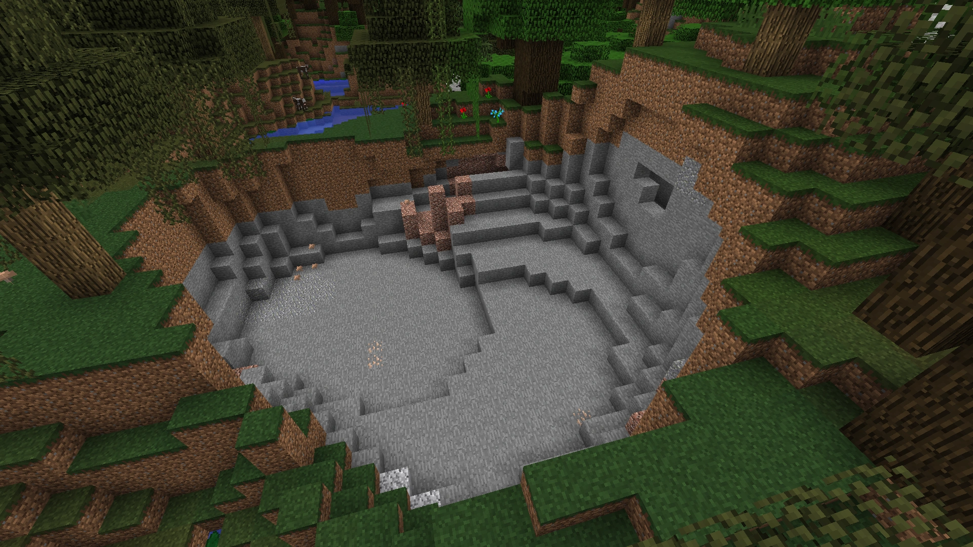 Ein Baum, der in am Boden eines breiten Schachtes generiert wurde