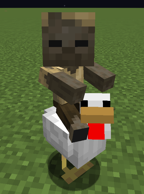- Das Huhn beachtet bei der Wegfindung nicht den auf ihm sitzenden Reiter. Daher läuft es auch durch 1 Block große Löcher, wodurch der Reiter erstickt.