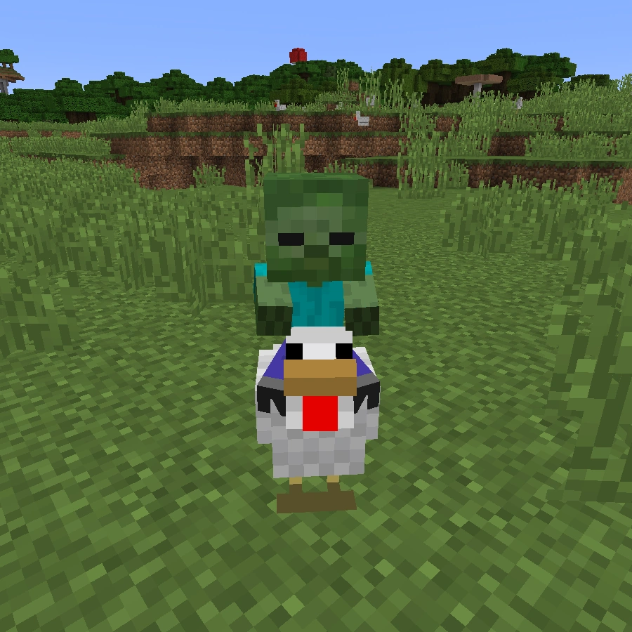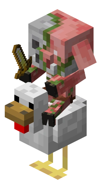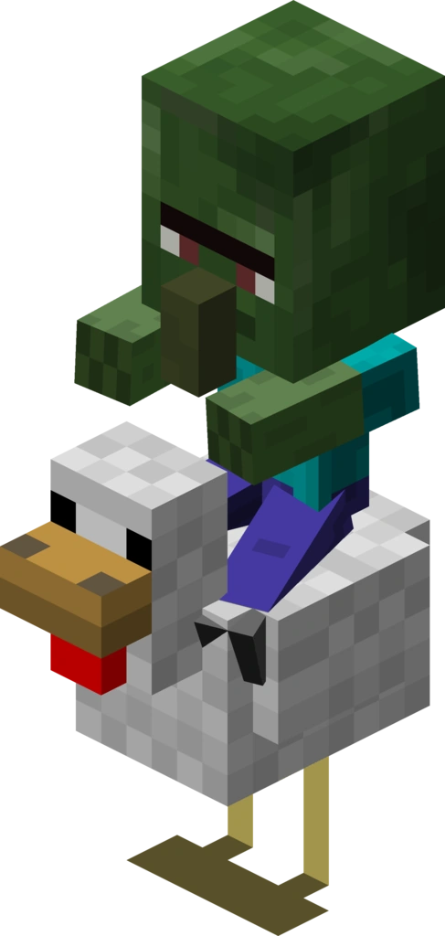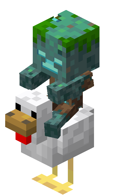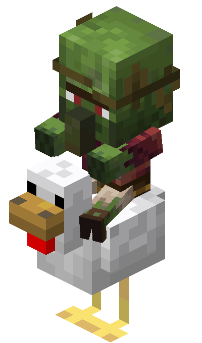 Der Hühnerreiter ist ein sehr seltenes Monster, das aus einem Huhn und einer darauf reitenden Zombiekindvariante besteht. Natürlicherweise kann auf dem Huhn ein Zombiekind, ein Wüstenzombiekind, ein Zombiedorfbewohnerkind, ein zombifiziertes Piglinkind oder ein Ertrunkenenkind reiten.