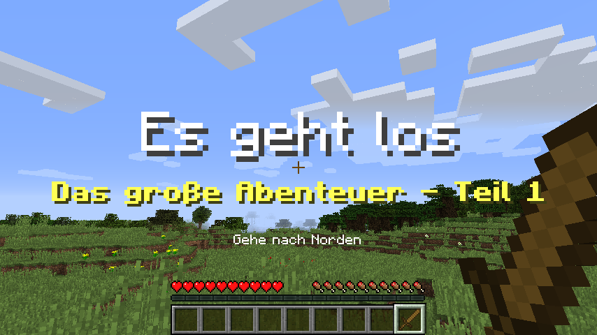 - Chatzeile am unteren Rand überdeckt die Schnellzugriffleiste. Dort können Befehle eingegeben und im Mehrspielermodus der Chat genutzt werden (mehr dazu). Die letzten Zeilen des Chat-Textes wandern nach oben und werden nach kurzer Zeit ausgeblendet. Man kann sie aber wieder einblenden, falls man etwas nachlesen möchte.