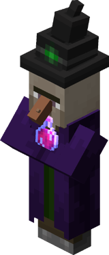 - ↑ "Die Kutte auf der Hexe ist nicht beabsichtigt. Die Kutte war schon immer in der Texturdatei enthalten, wurde aber einfach nicht gerendert. Durch das neue Dorfbewohner-Modellsystem wird sie jetzt gerendert." – @JasperBoerstra, 13. Dezember 2018
