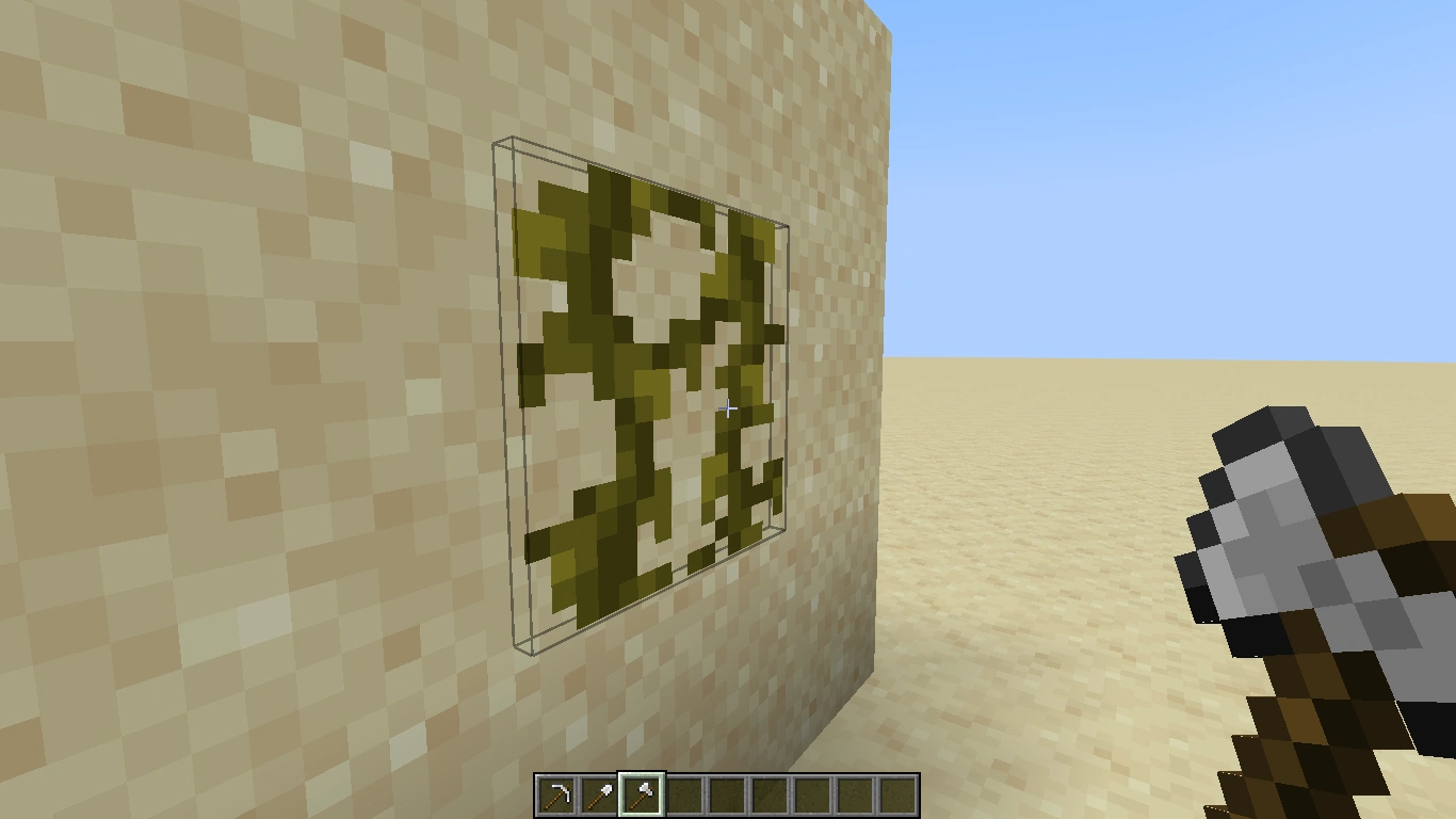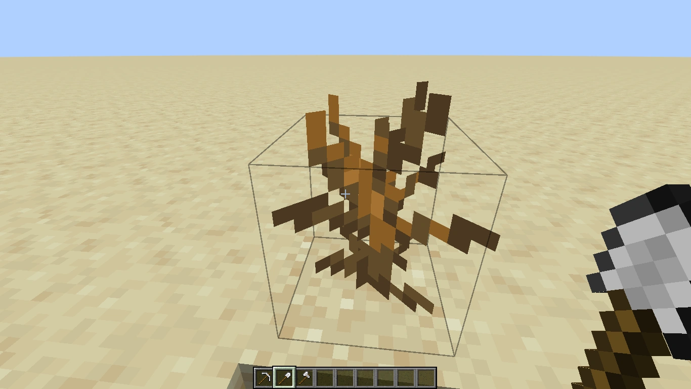 Es gibt daneben noch eine Reihe von Blöcken, deren Textur nicht das gesamte Würfelvolumen ausfüllt, wie z.B. die Sonnenblume. Da ihre Hitbox aber der gesamte Würfel ist, führt jeder Schlag auf eine Stelle dieses Würfels zum Abbau der Sonnenblume.