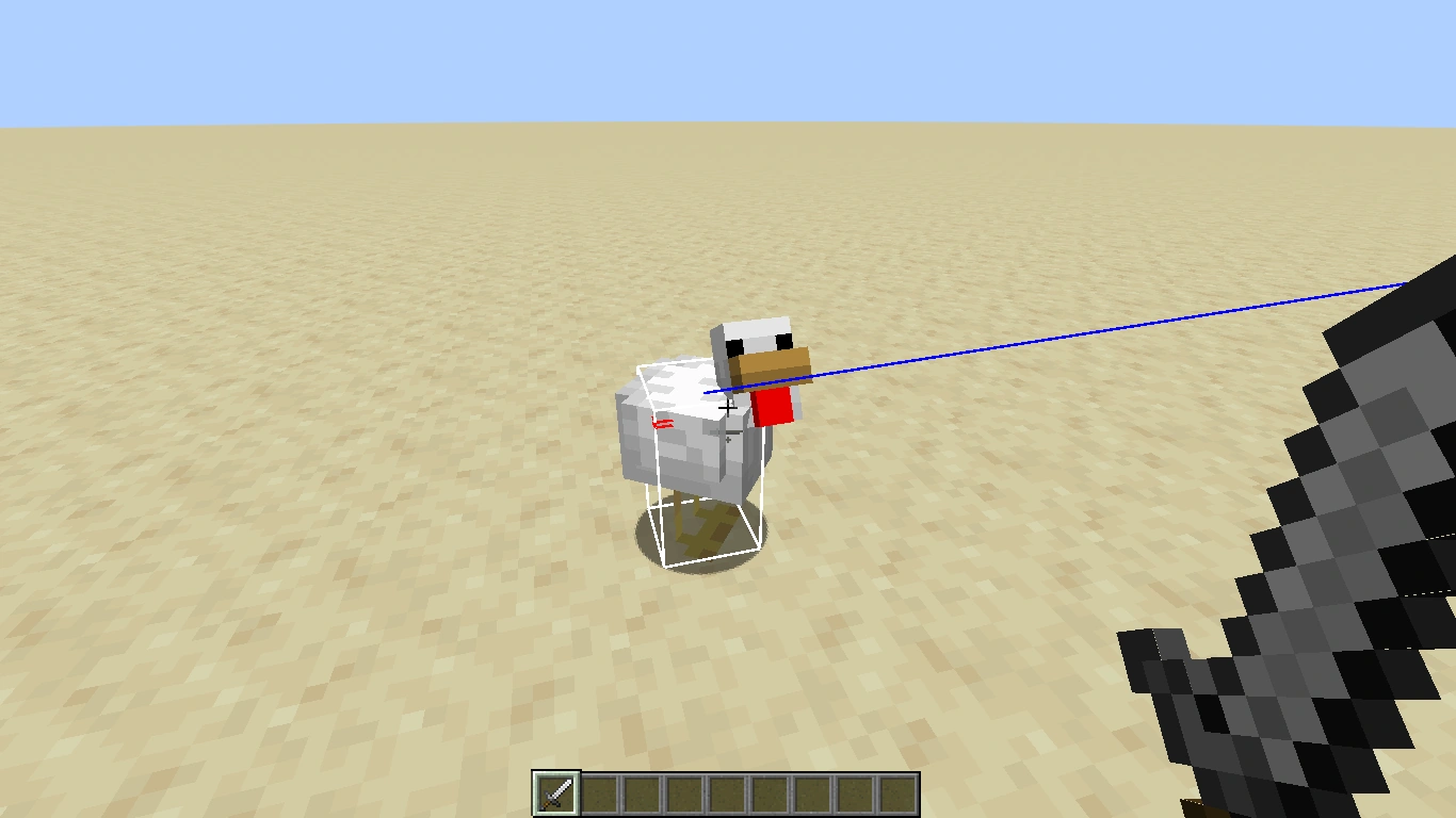 Die Hitbox eines Schweines ist beispielsweise größer ist als die eines Huhns, aber wiederum etwas kleiner als die einer Lore. Eine Loren-Hitbox steht, wie unten gezeigt, blockgitterfixiert, die Lore selbst kann allerdings kreuz und quer außerhalb der Hitbox stehen.