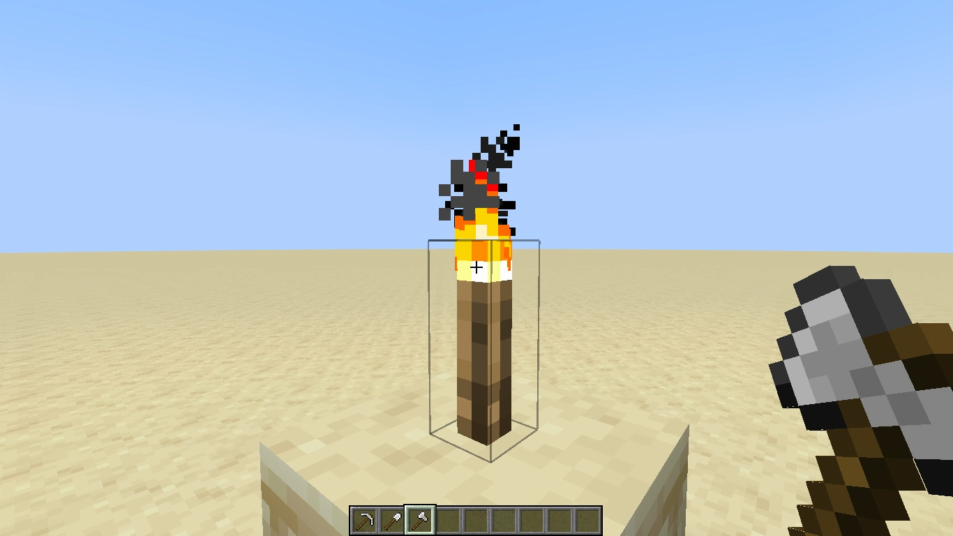 - Die Hitbox beim Zaunpfahl ist fast identisch zur Kollisionsbox, die Kollisionsbox ist jedoch einen halben Block höher, man kann nicht durch ihn hindurchlaufen; wenn man auf einem Zaunpfahl steht, steht man einen halben Block höher als auf normalen Blöcken. Bei der Fackel ist das anders: Sie hat nur eine Hitbox, keine Kollisionsbox, man kann einfach durch sie hindurch laufen.