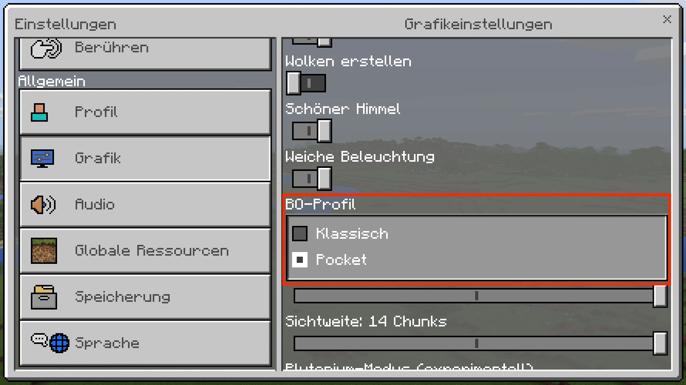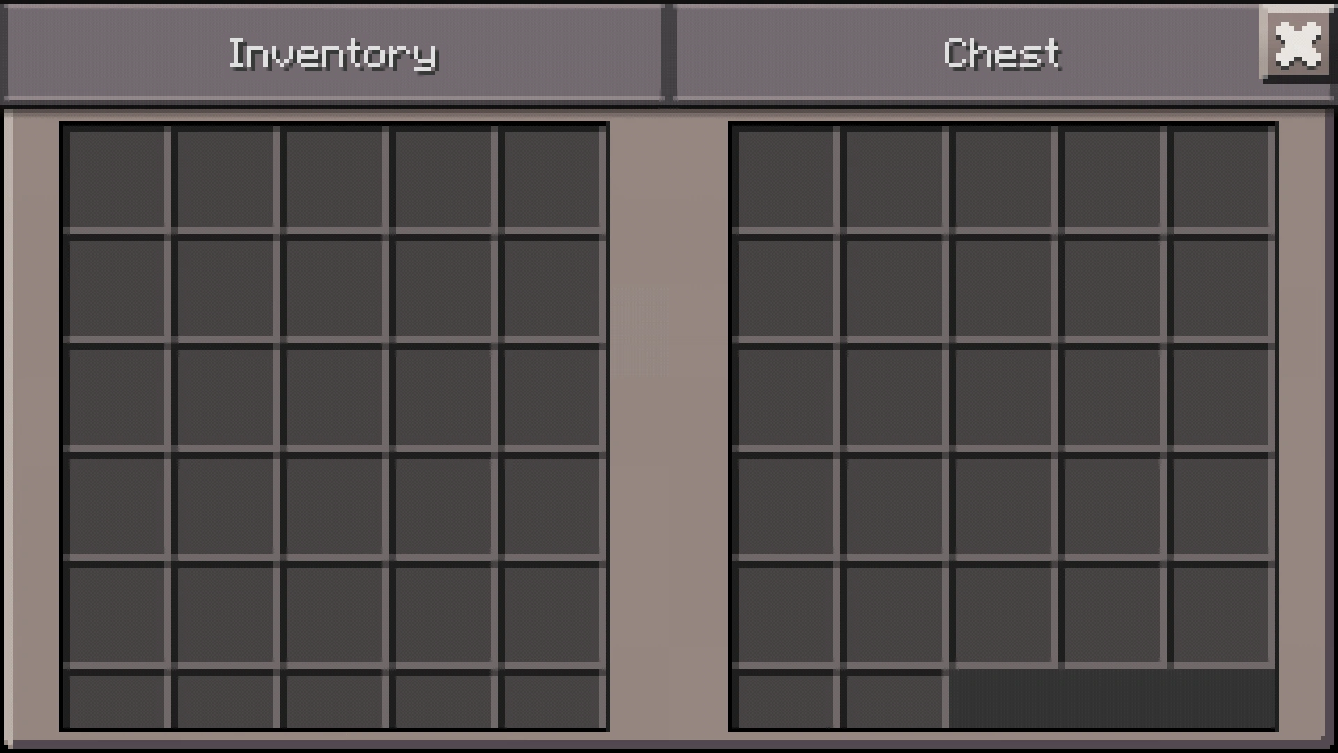 Bei aktivierter "Pocket"-UI ist beim Truheninventar der Bedrock Edition links das Spielerinventar und rechts der Füllstand der ausgewählten Truhe zu sehen. Hier ist eine Anordnung der Stapel möglich.