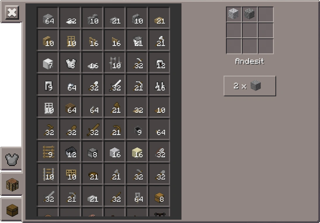 Das Inventar im Kreativmodus vor Alpha 0.8.0