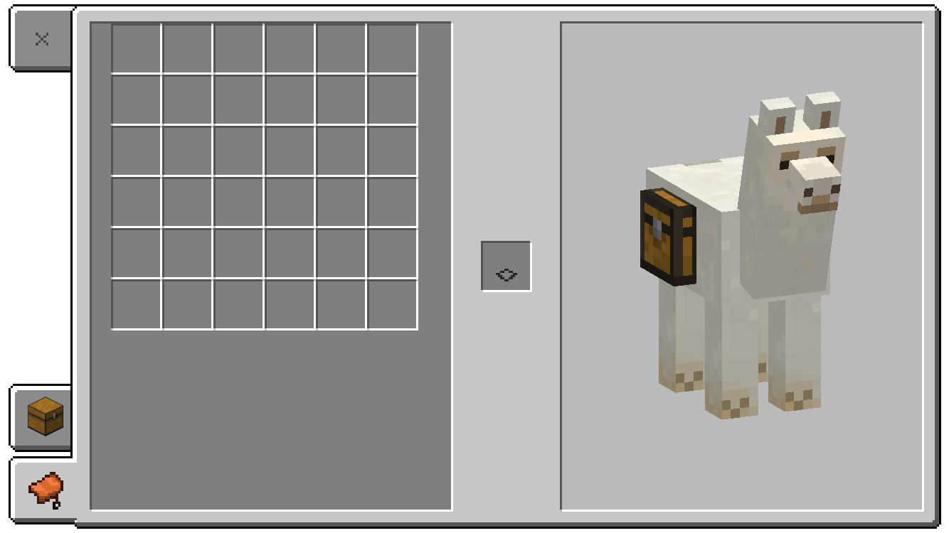 Beim Esel- oder Maultierinventar befindet sich auf der linken Seite das Spielerinventar. Von dort aus kann man einen Sattel in die Mitte auf das dafür vorgesehende Feld legen. Auf der rechten Seite sieht man das Tier. Falls man sein Tier mit einer Truhe ausgestattet hat, kann man ganz links unten in der Ecke zwei Knöpfe finden. Mit diesen kann man zwischen dem Esel-/ Maultierinventar (Knopf mit dem Sattel) zur Truhe (Knopf mit der Truhe) wechseln und umgekehrt. Beim Truheninventar befindet sich auf der linken Seite das Spielerinventar und auf der rechten das der Truhe. Nun kann man die Gegenstände beliebig hin- und her- verschieben.