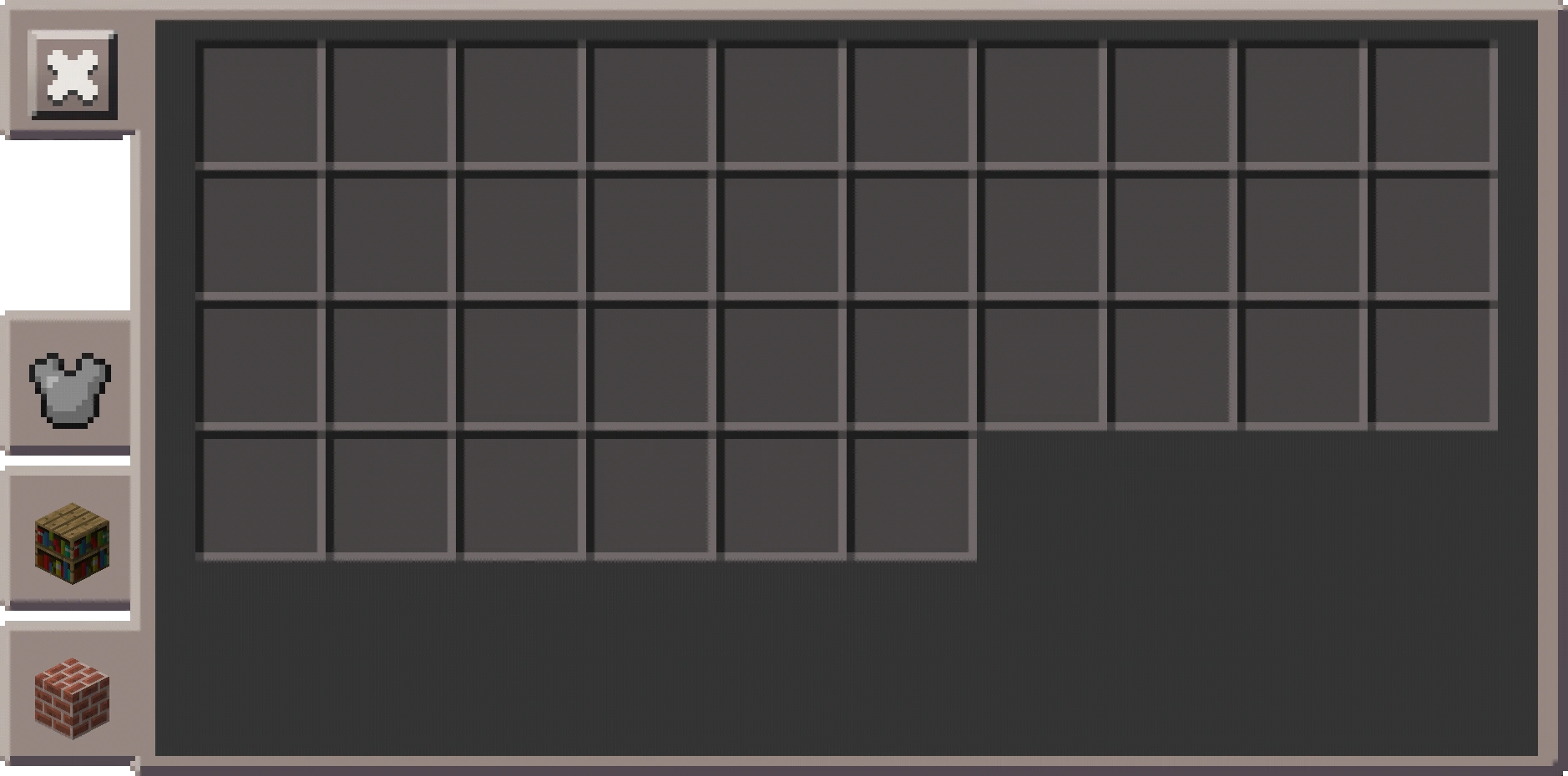 Das Inventar im Kreativmodus mit klassischer Benutzeroberfläche, dessen Aufbau und Design sich deutlich von dem in der Java Edition genutzten Inventar abhebt, zudem lässt sich der linke Teil einklappen, so dass das Inventar dem des Überlebensmodus entspricht.