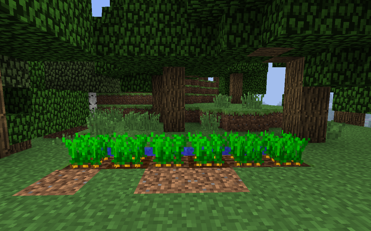Karotten zusammen mit Kartoffeln und Weizen in einem NPC-Dorf.
