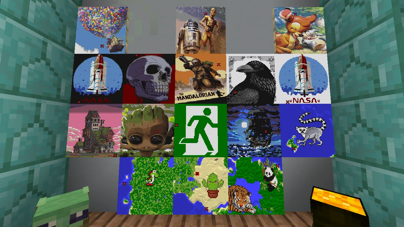 Mehrere Schatzkarten zu Pixelarts ausgebaut.